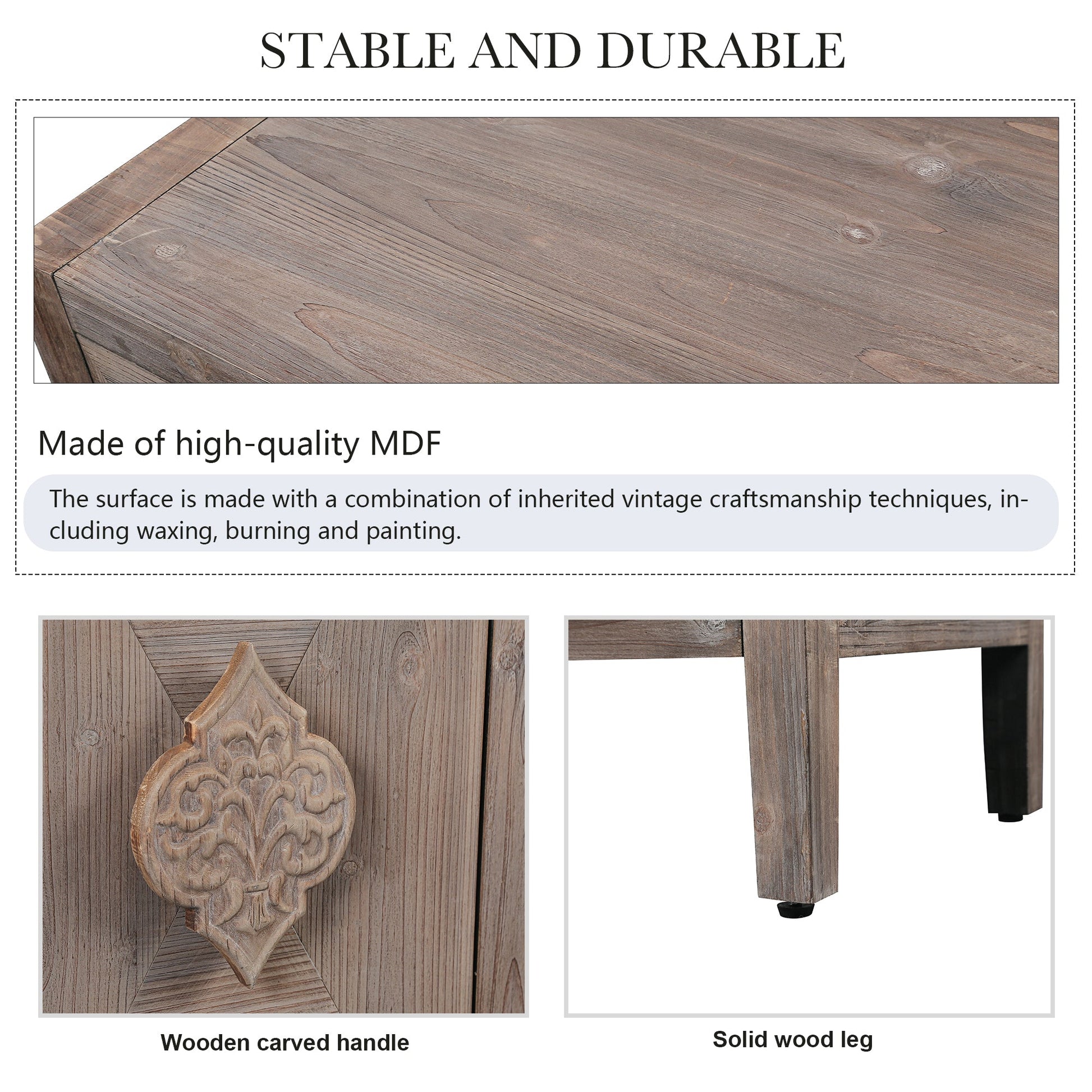 - [Craftsmanship]: The whole cabinet is made of high-grade MDF board pasted with pine veneer, and then the texture effect of the veneer is shown through the burn-through process, which makes the whole cabinet more rich in texture and texture beauty. The use of this process not only increases the ornamental nature of the furniture, but also can show the natural beauty and unique texture of the wood.