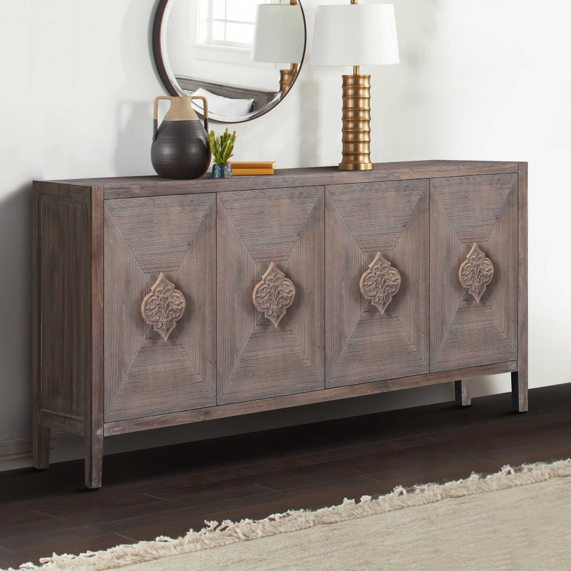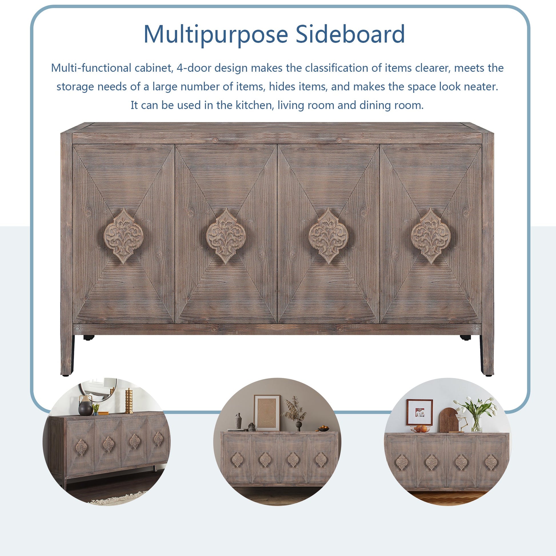 Brenda Carved Flower Door Handle, Antique Four Door Cabinet for Living Room Kitchen Hallway (Brown)