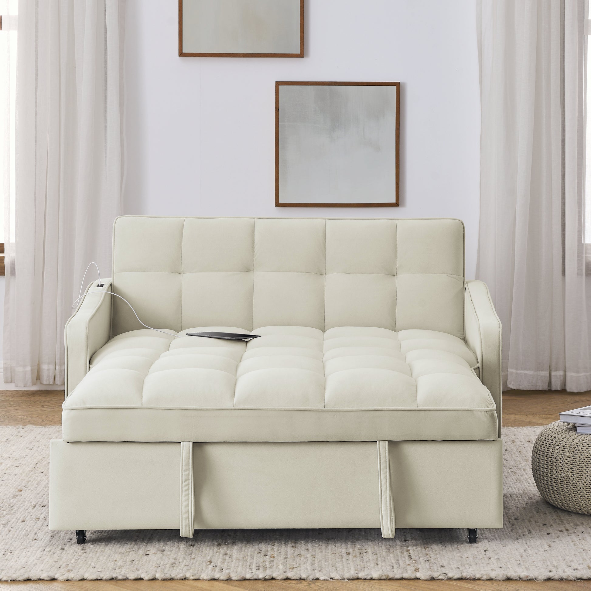Zoe Velvet Loveseat Sofa Bed with Pockets & USB Charging, Beige