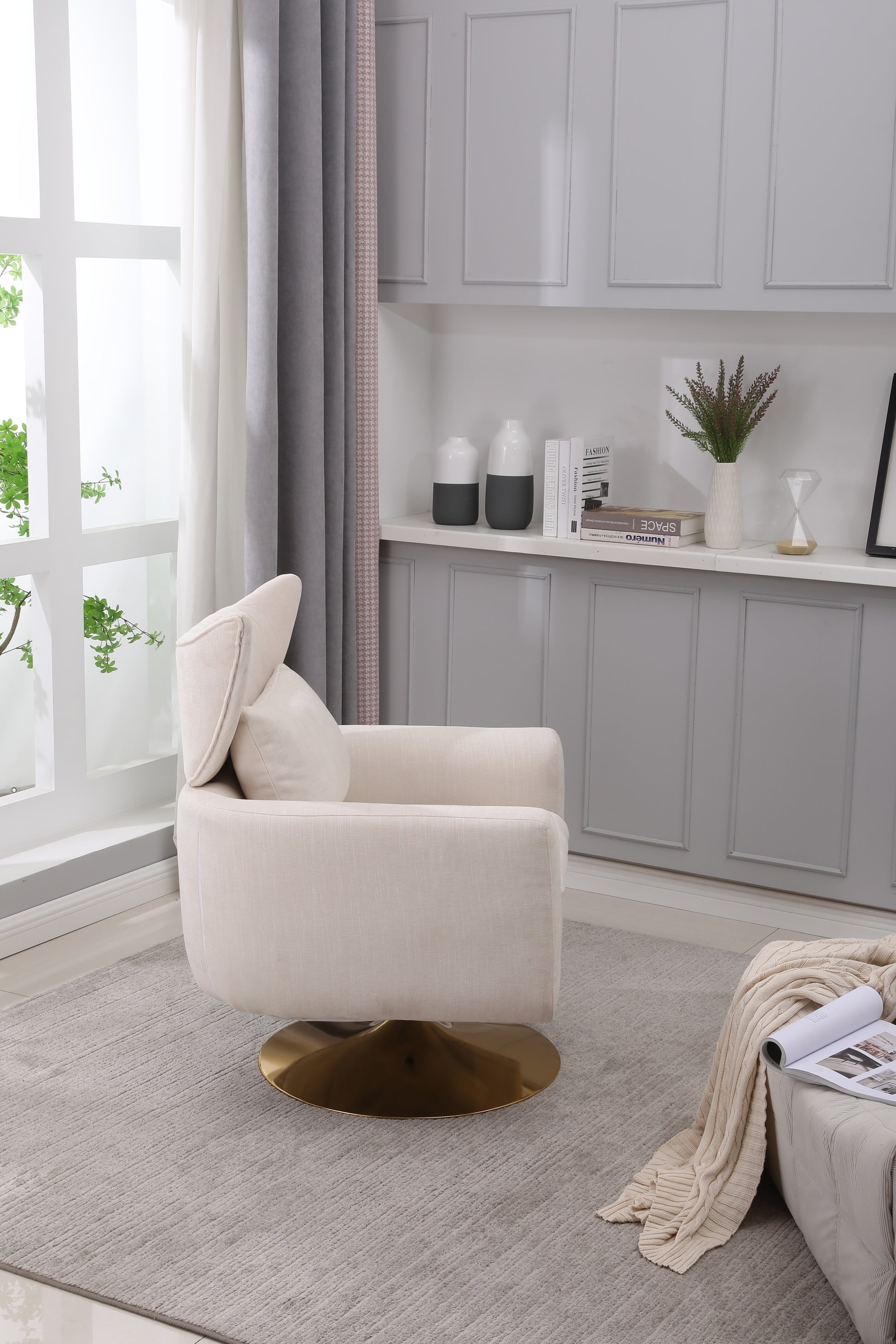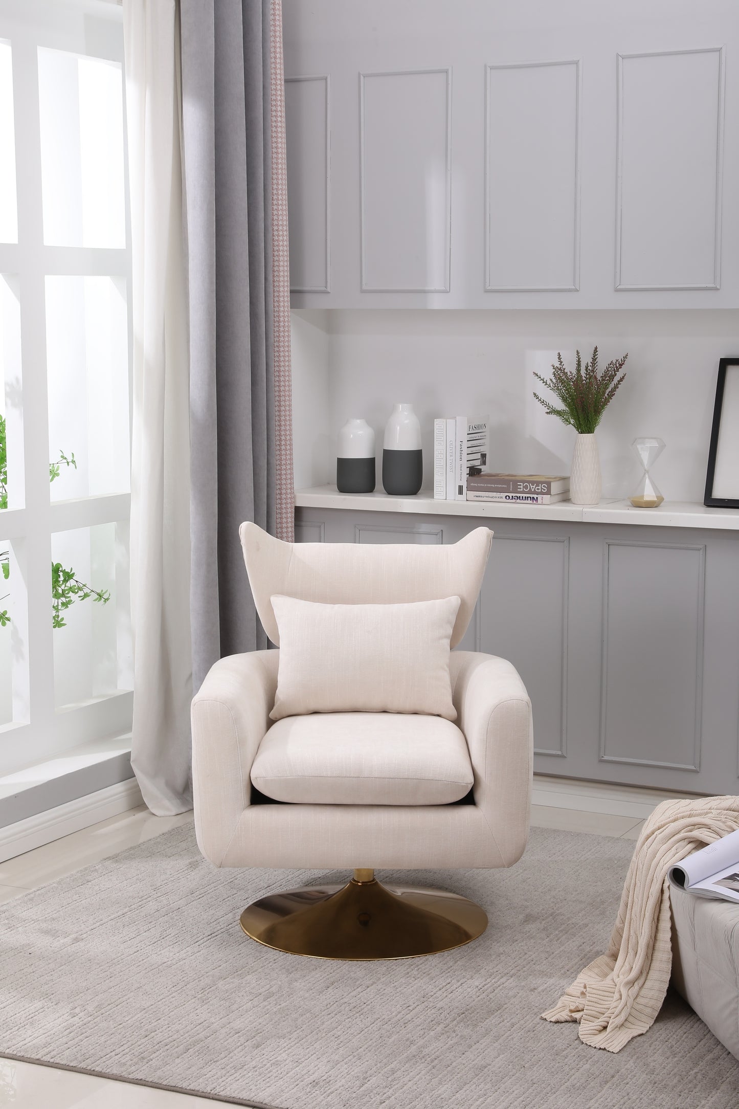 Brenda Mid-Century Modern Linen Swivel Chair with Gold Base - Beige