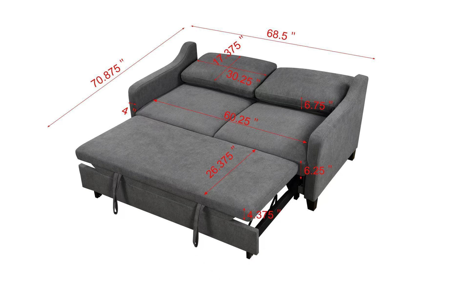 - CONVERTIBLE PULL-OUT SOFA BED:This sofa is equipped with a pull-out bed, which can be pulled out with 2 auxiliary hand straps to easily and quickly convert the loveseat into a chaise longue or a sleeping bed. Not only can it meet your needs for watching TV, playing games, or taking a break, but it can also provide a place to stay for overnight friends. It is very practical for a limited small space.