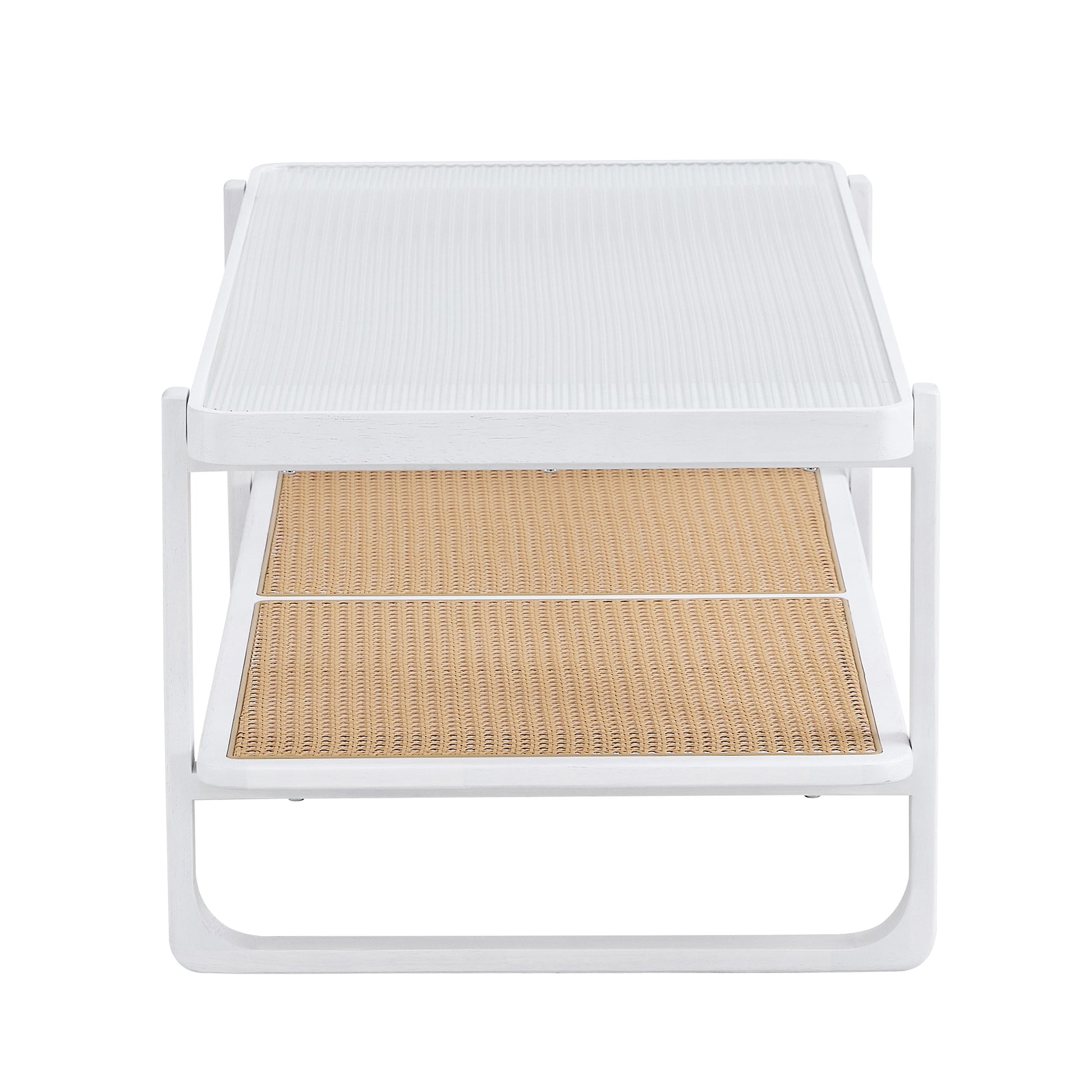 Dallas Modern Glass Top Coffee Table with Rattan Shelf - White
