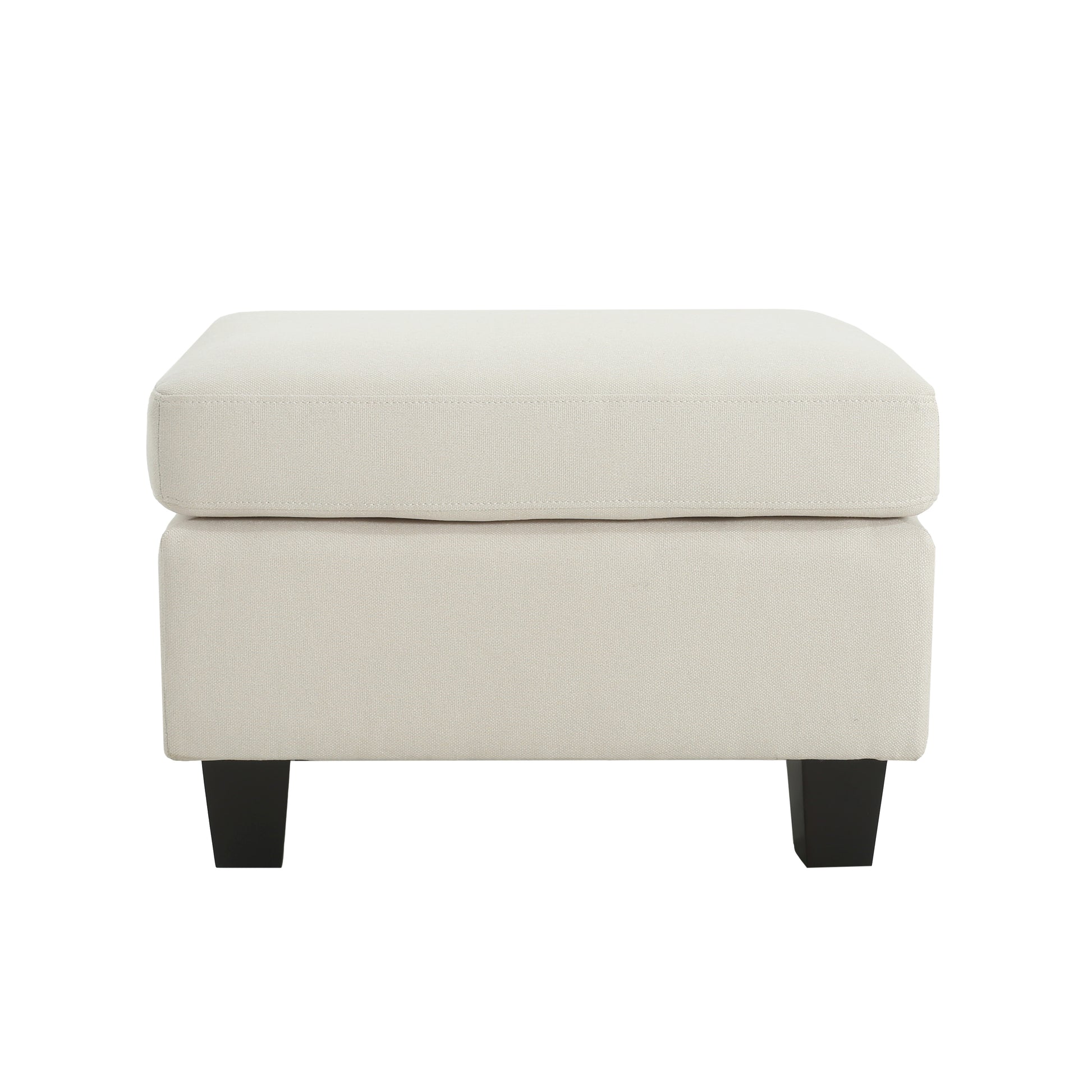 - Creating a cozy living space is easy with this charming and stylish ottoman. This piece is as practical as it is pretty, featuring smooth fabric upholstery and a minimalist silhouette. For a beautiful and sturdy finishing touch, birch wood legs complete this versatile and lovely ottoman. Whether you use it as a simple and chic accent, as a footrest, or as a spare seat for guests, this ottoman is sure to be the perfect complement to your carefully-curated contemporary home.