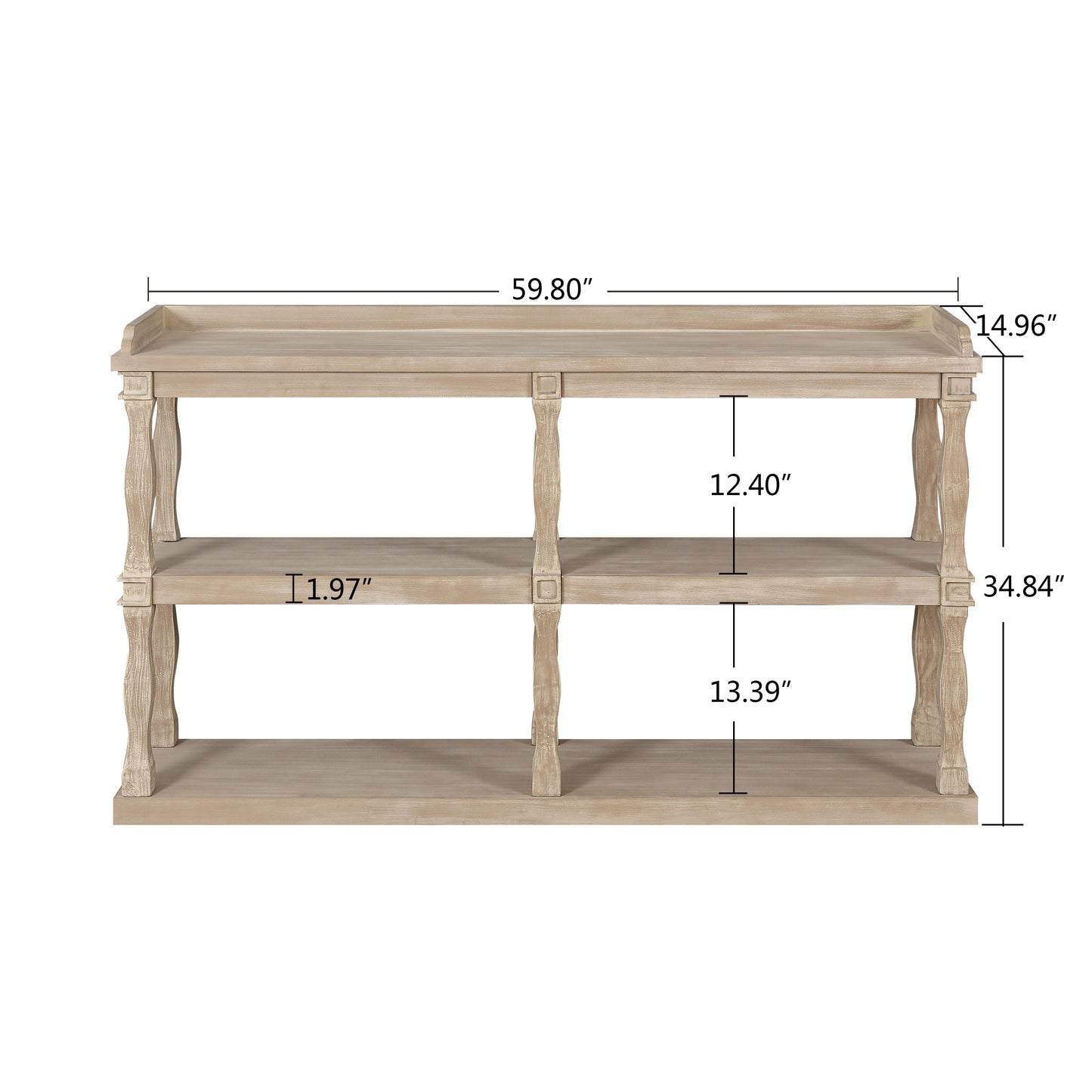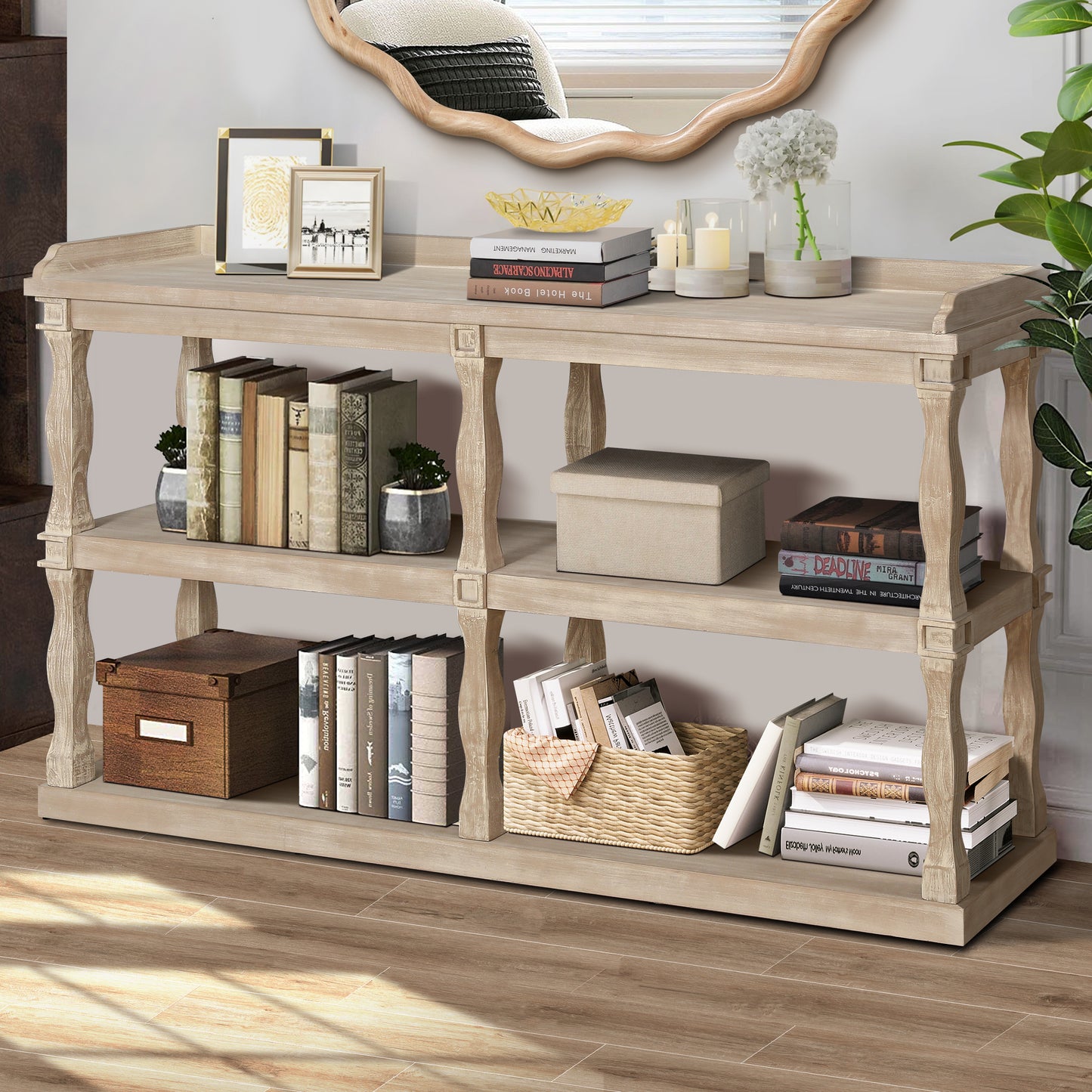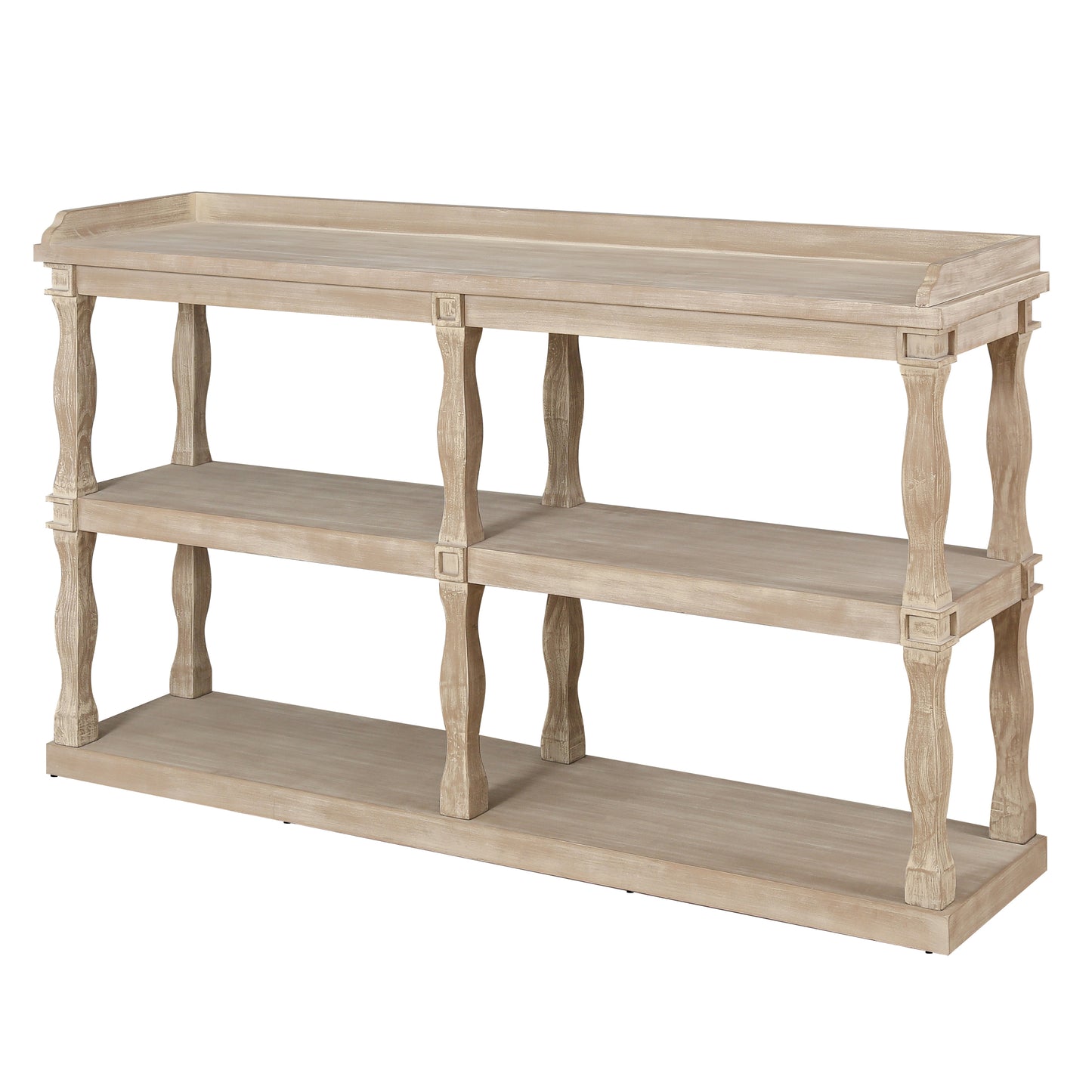 Eamon Traditional Wooden Console Table with 3-Tier Open Storage - Antique White