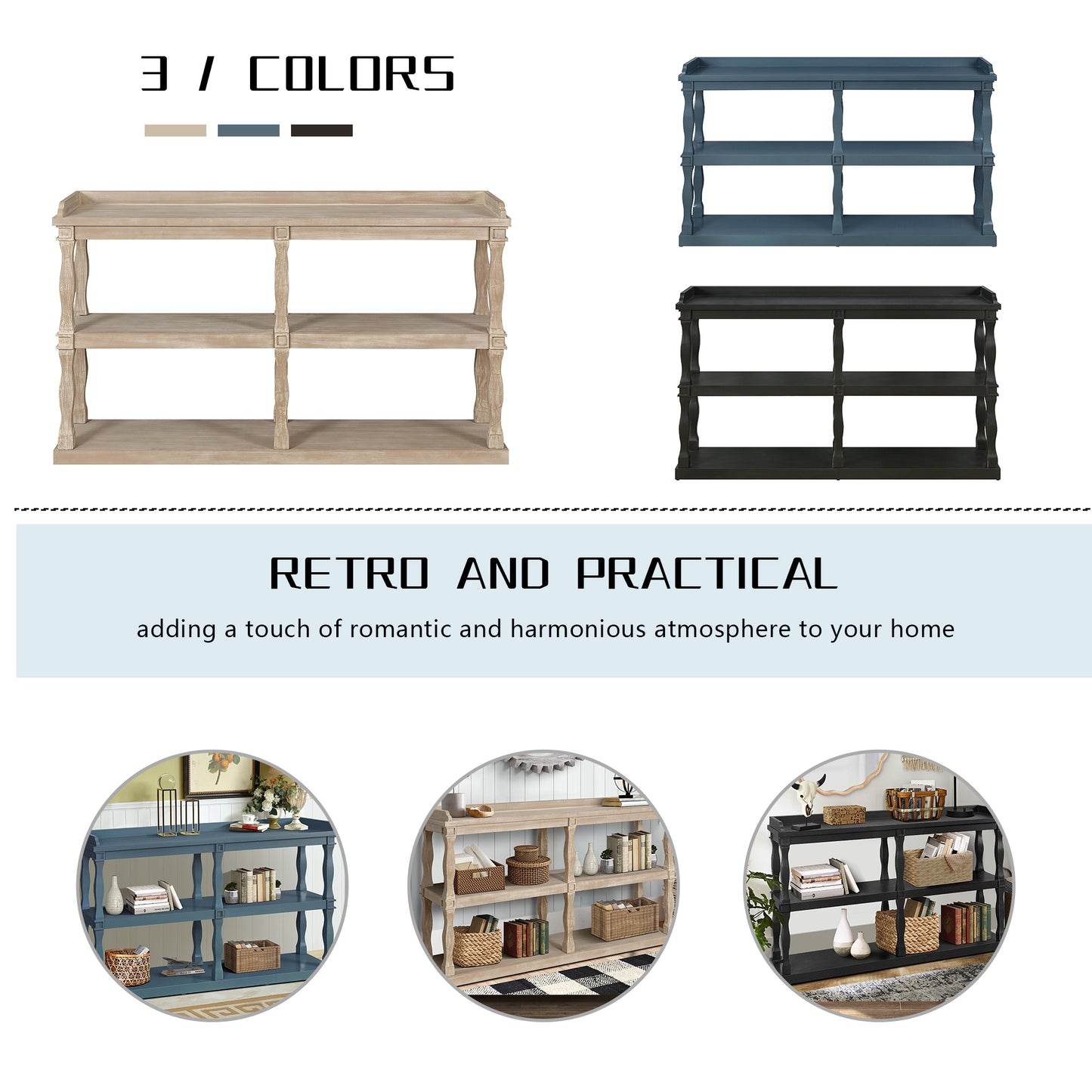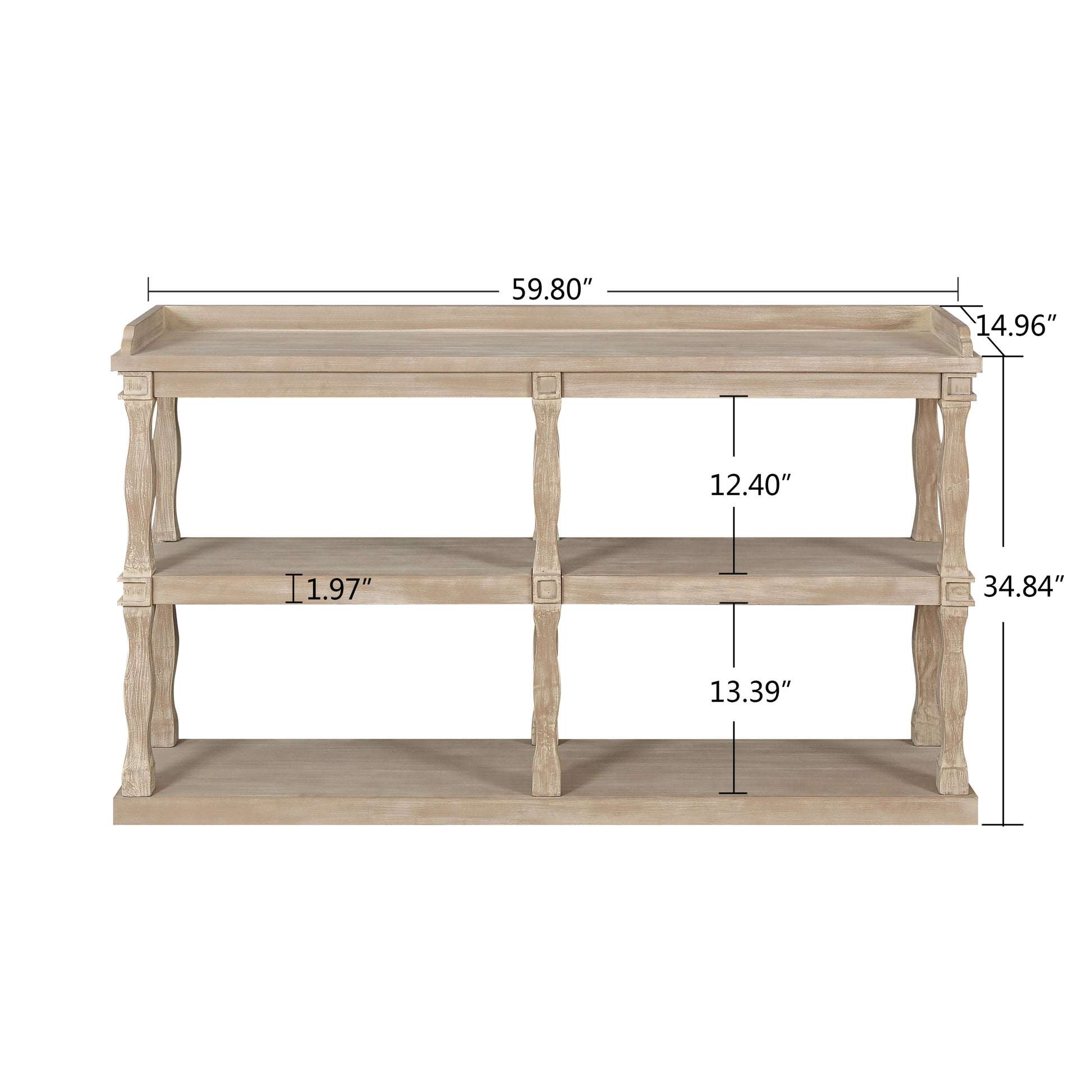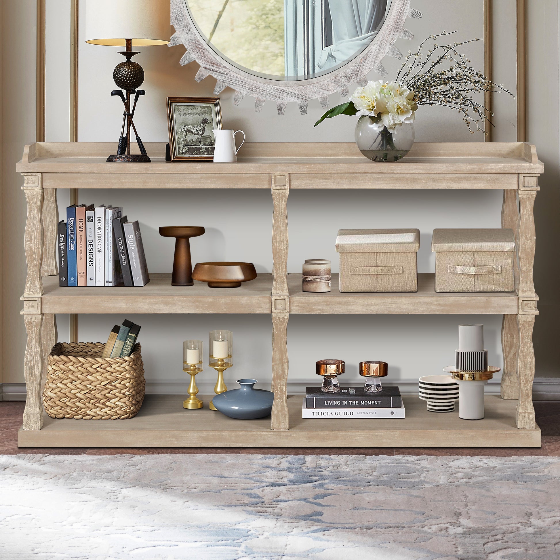 Eamon Traditional Wooden Console Table with 3-Tier Open Storage - Antique White