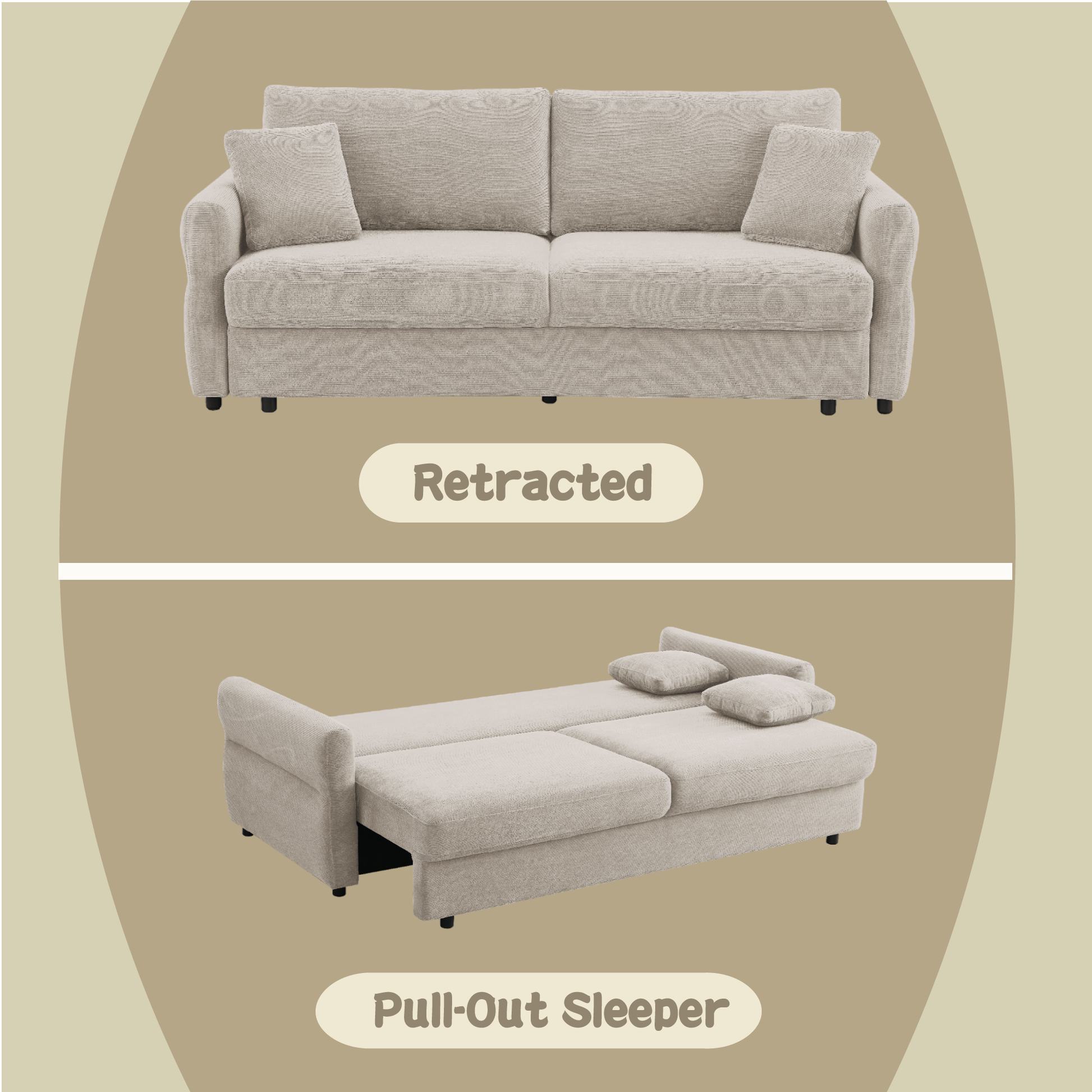 - This stylish fabric pull-out sleeper sofa is available in two colors: blue and beige, designed to bring comfort and functionality to any living space.