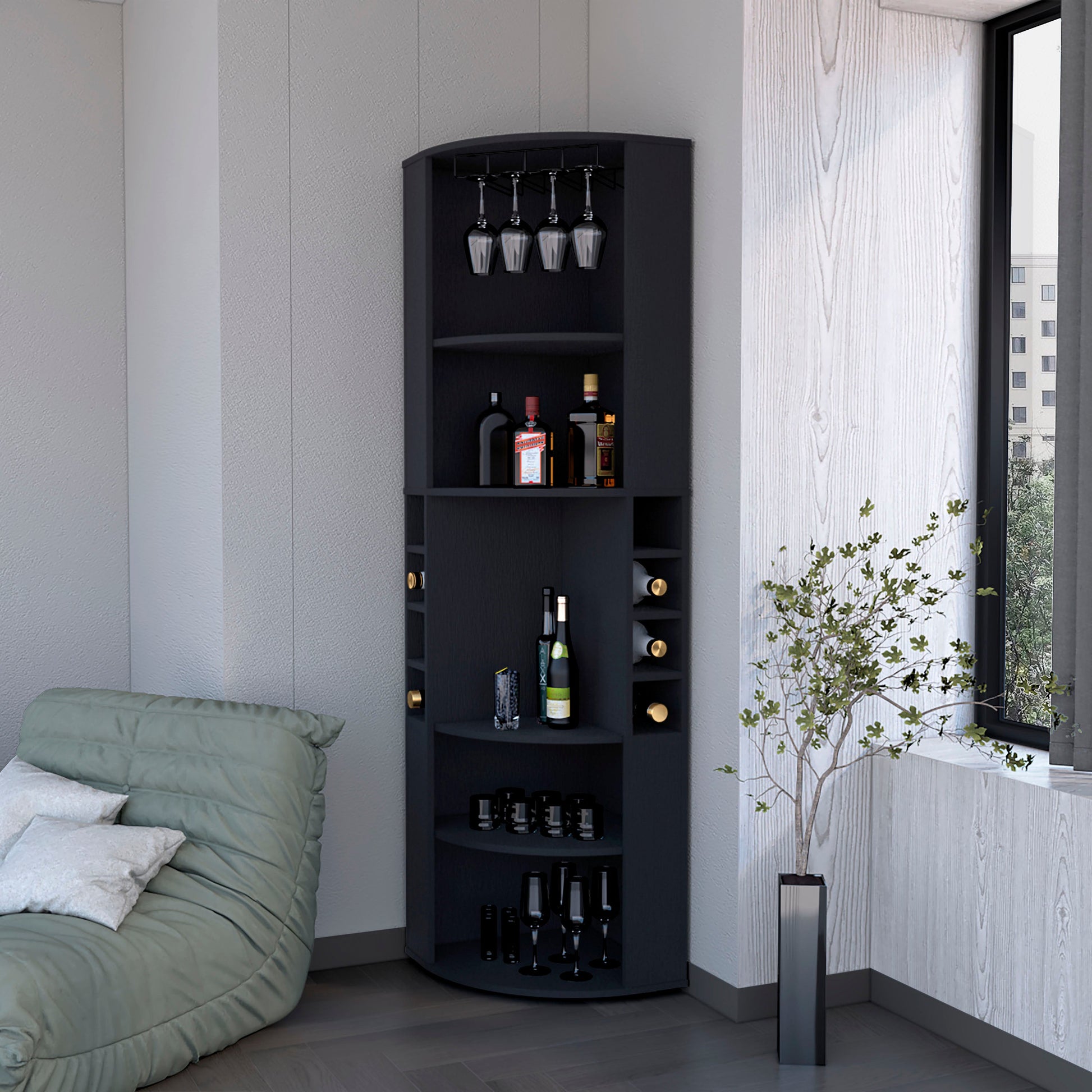 Avery Black 5 Large Shelves Corner Bar Cabinet