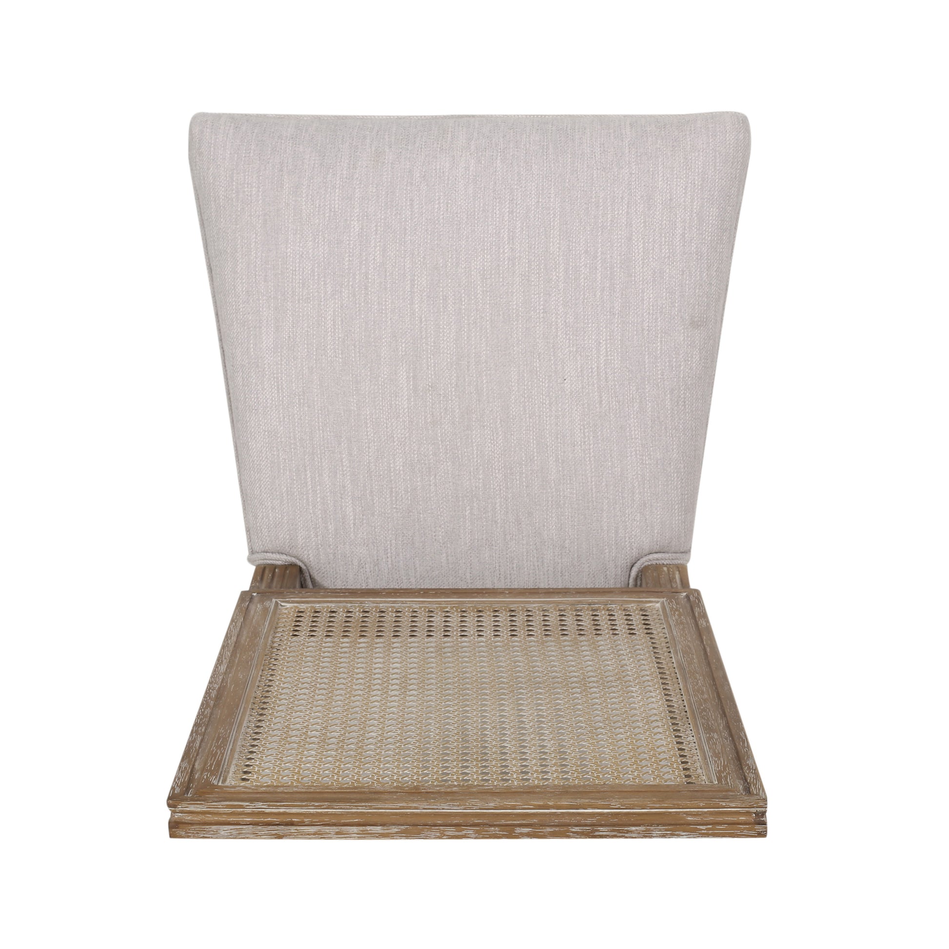 - Drawing from French country inspiration, our set of two dining chairs feature an understated rectangular backrest made with cane, smooth upholstered seating, and fluted legs to offer your home something a little out of the ordinary while also remaining true to their elegant, old-fashioned roots.