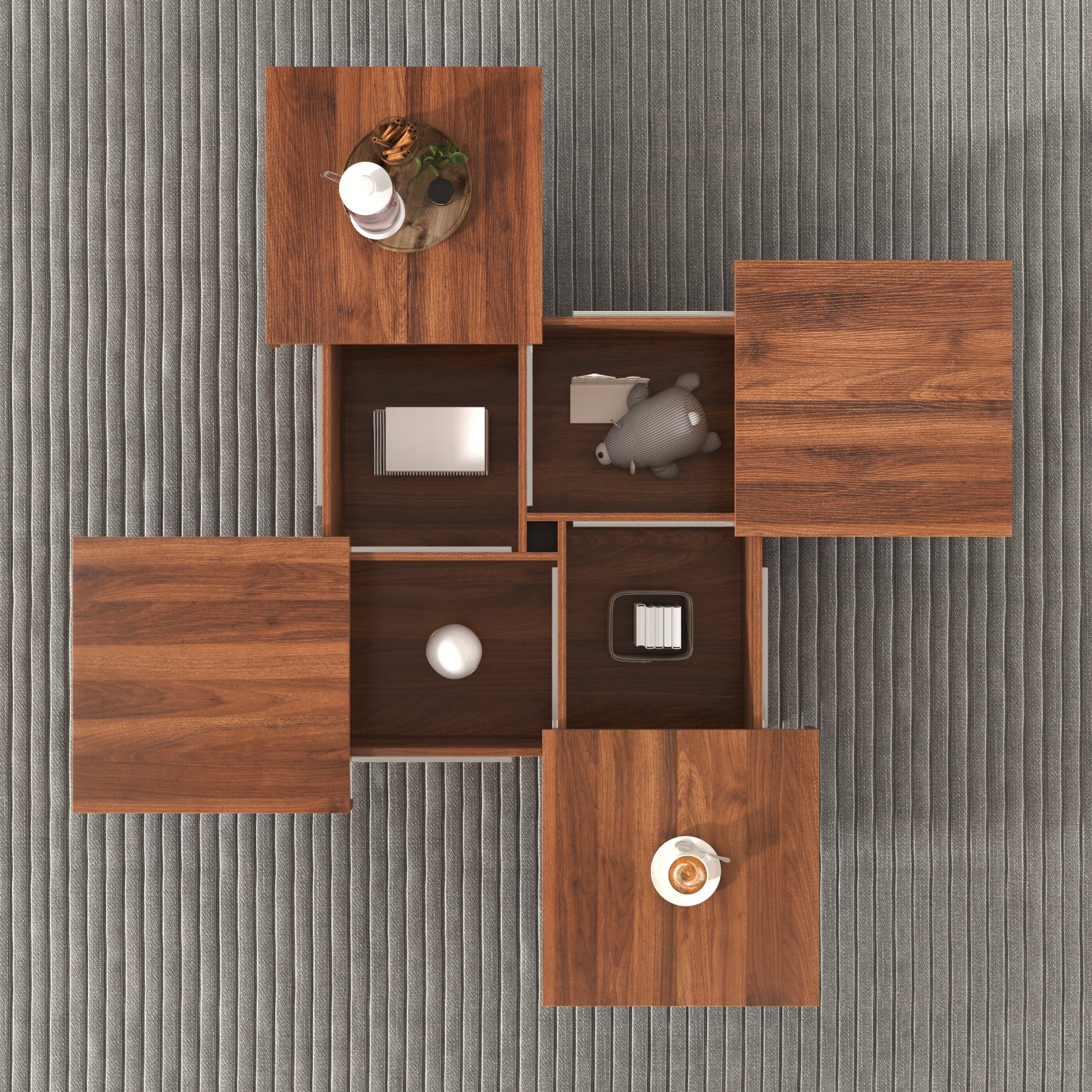 - Walnut Grain Veneer Finish: The coffee table boasts a walnut grain veneer finish, adding a touch of warmth and sophistication to your home decor. The rich wood grain enhances the visual appeal of the table, making it a focal point in any room.