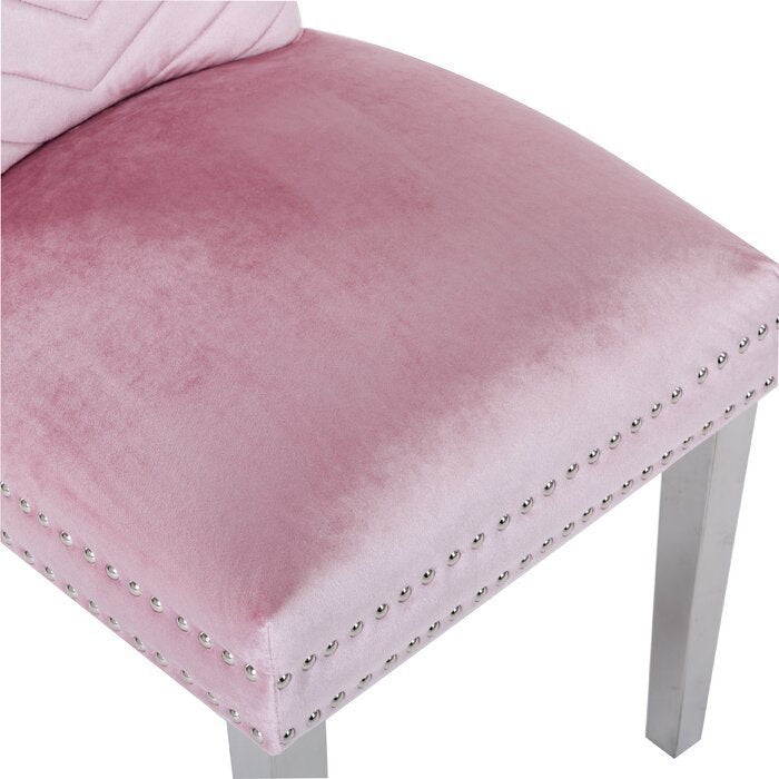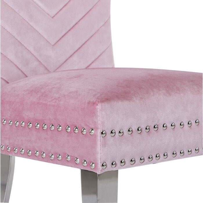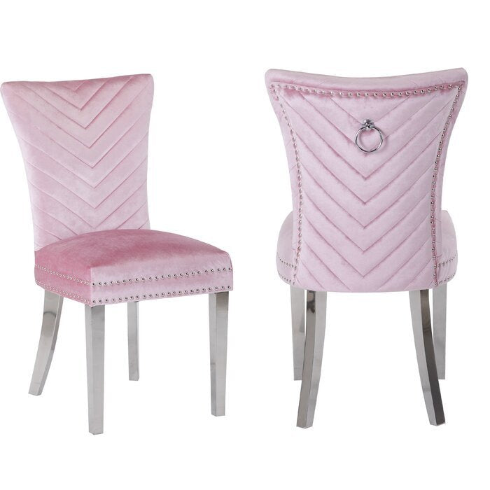 Eva Transitional Velvet Dining Chair with Stainless Steel Legs in Pink (Set of 2)