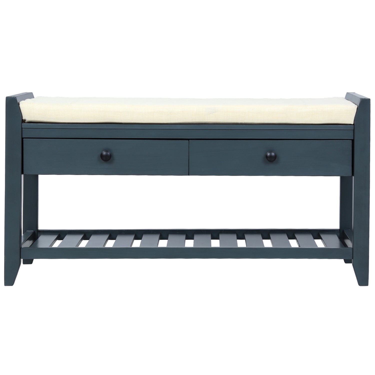 TREXM Entryway Storage Bench with Cushioned Seat - Antique Navy