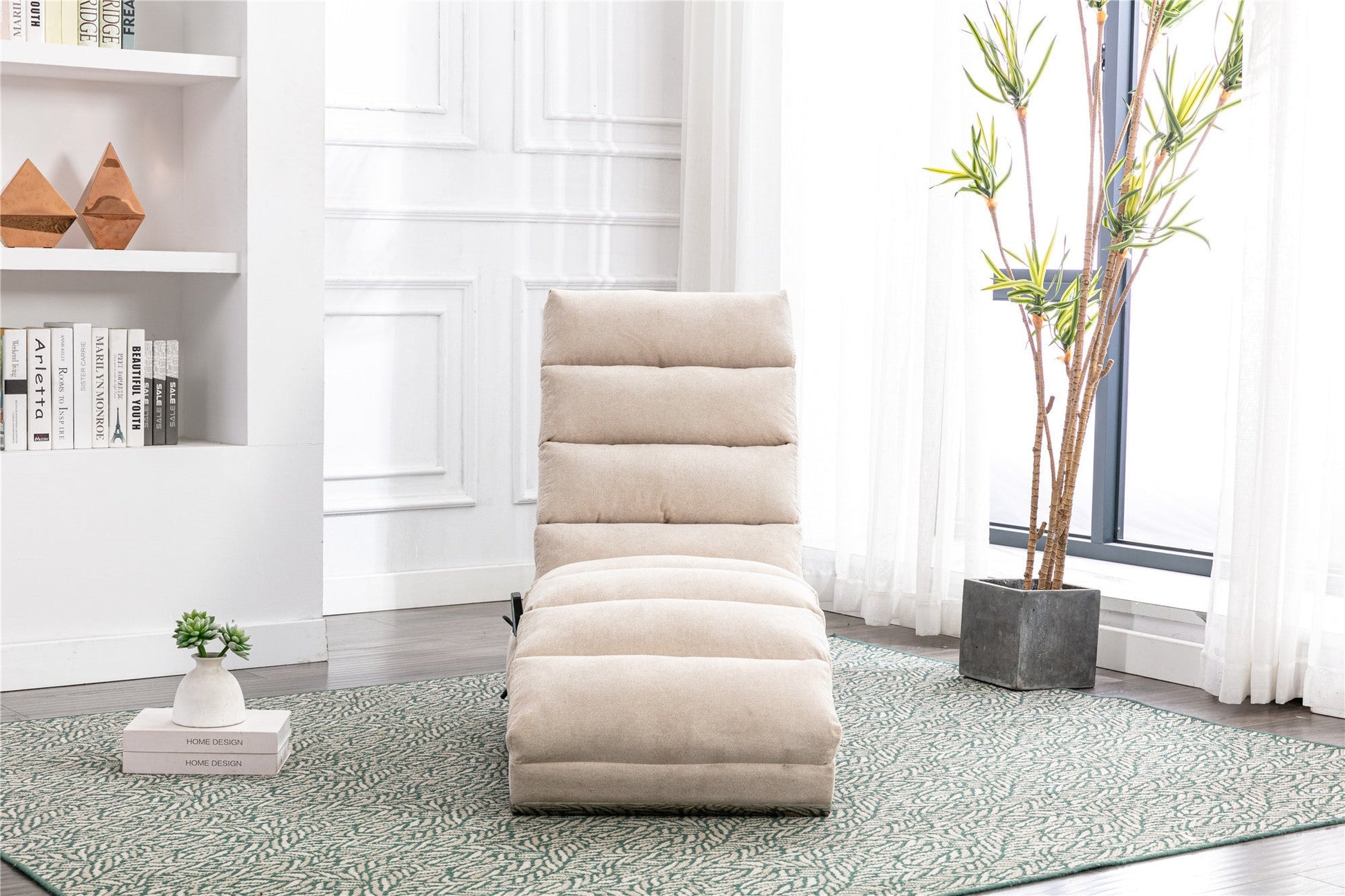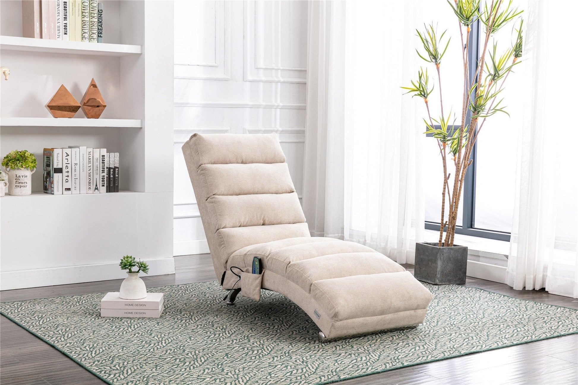 Coolmore Modern Linen Chaise Lounge with Massage Function & Remote in Beige