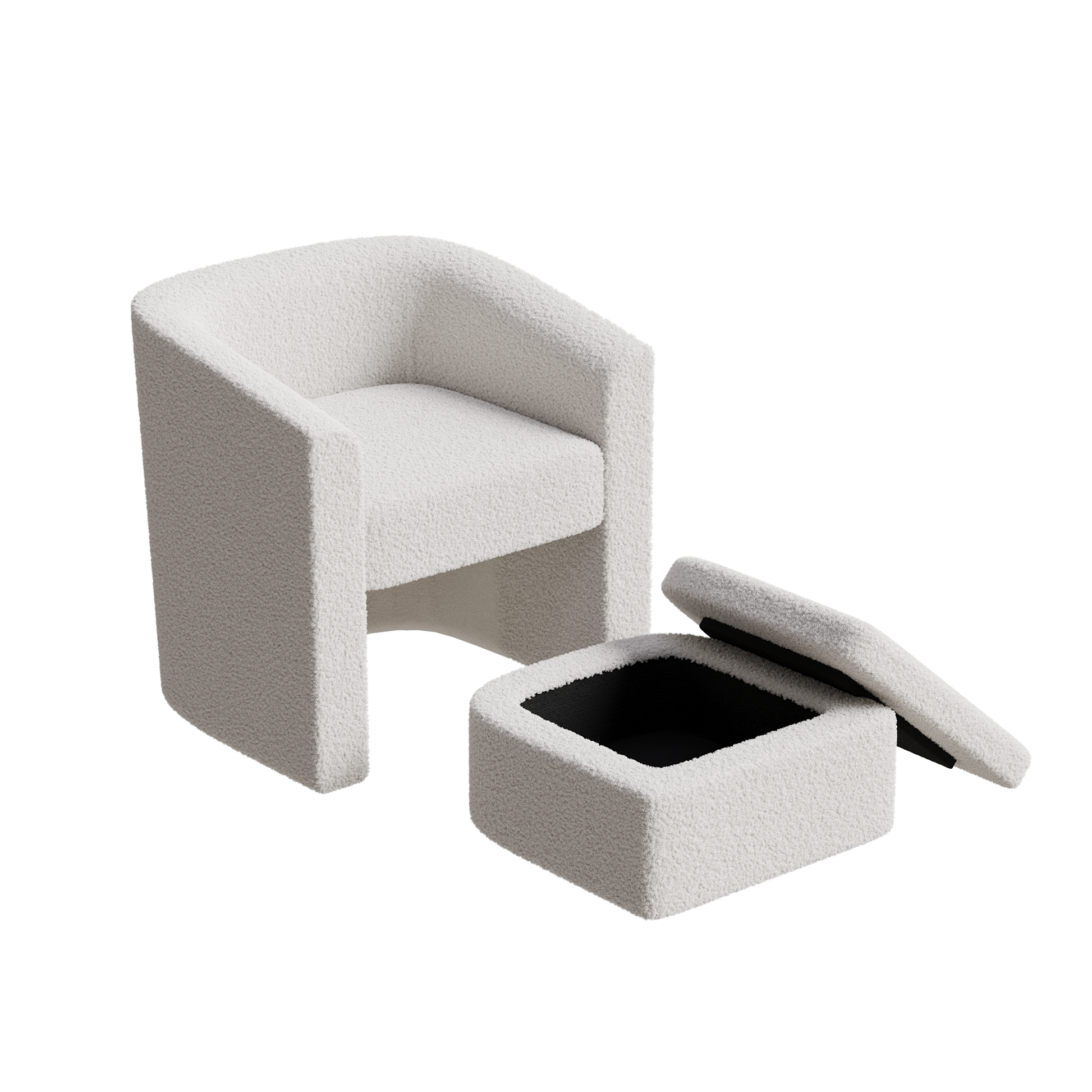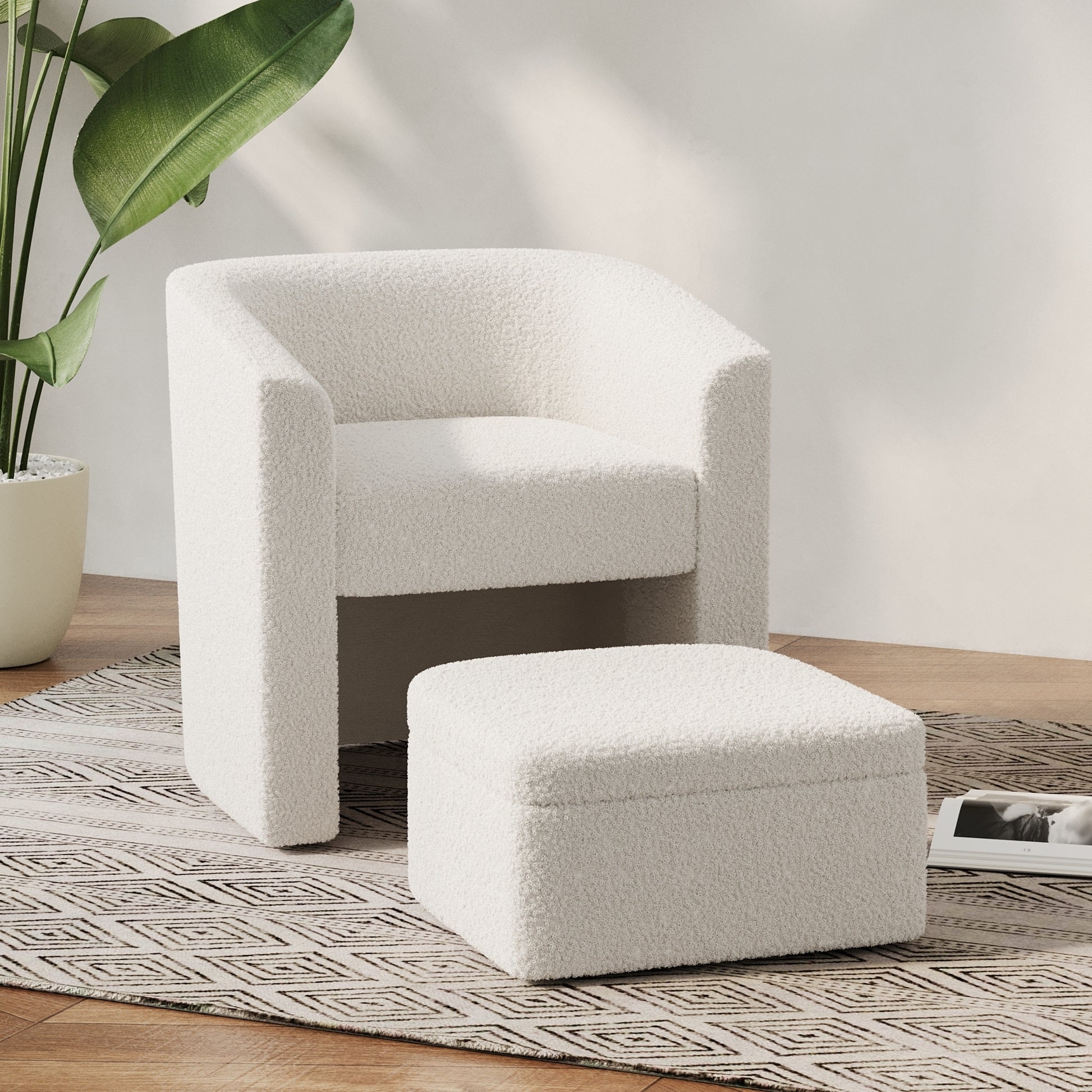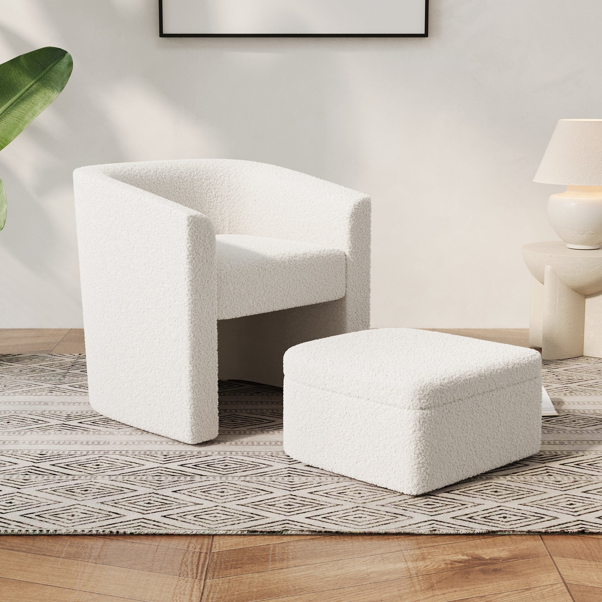 Cher Cream White Velvet Accent Chair & Ottoman Set