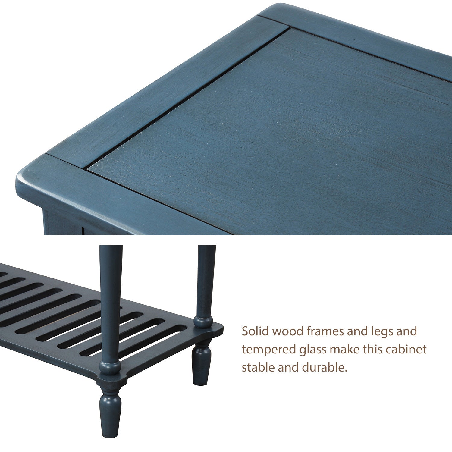 TREXM Sideboard Console Table with Bottom Shelf, Farmhouse Wood/Glass Buffet Storage Cabinet
