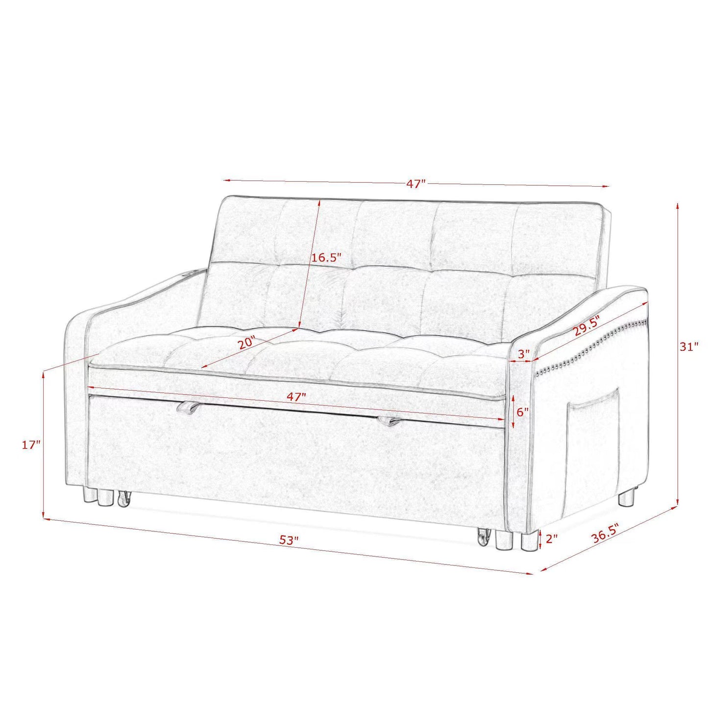 - Pull-Out Sleeper: Quickly converts into a guest bed — perfect for overnight guests or small living spaces