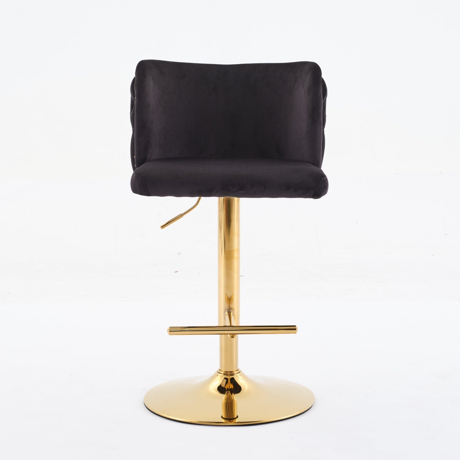 Junia Velvet Tufted Adjustable Height Bar Stools (Set of 2) Black