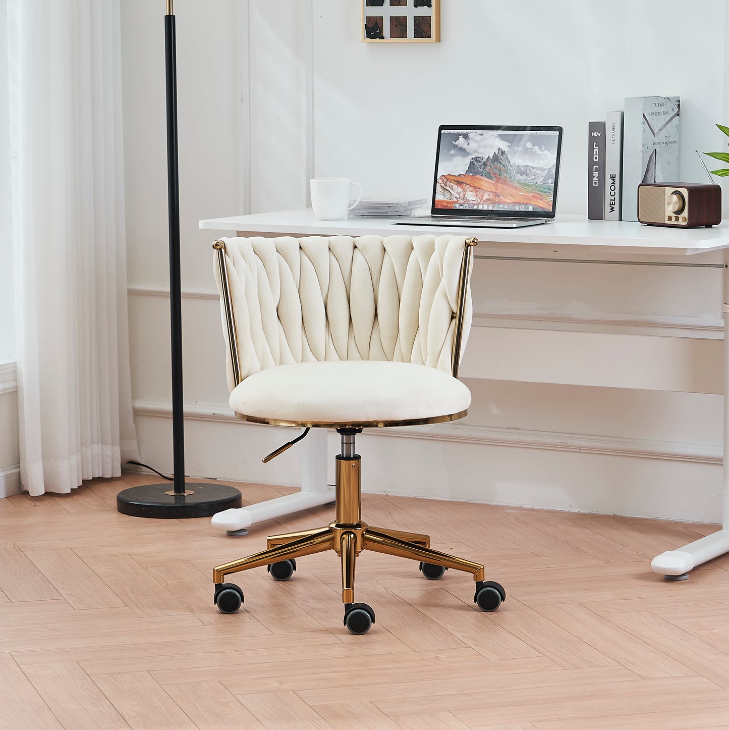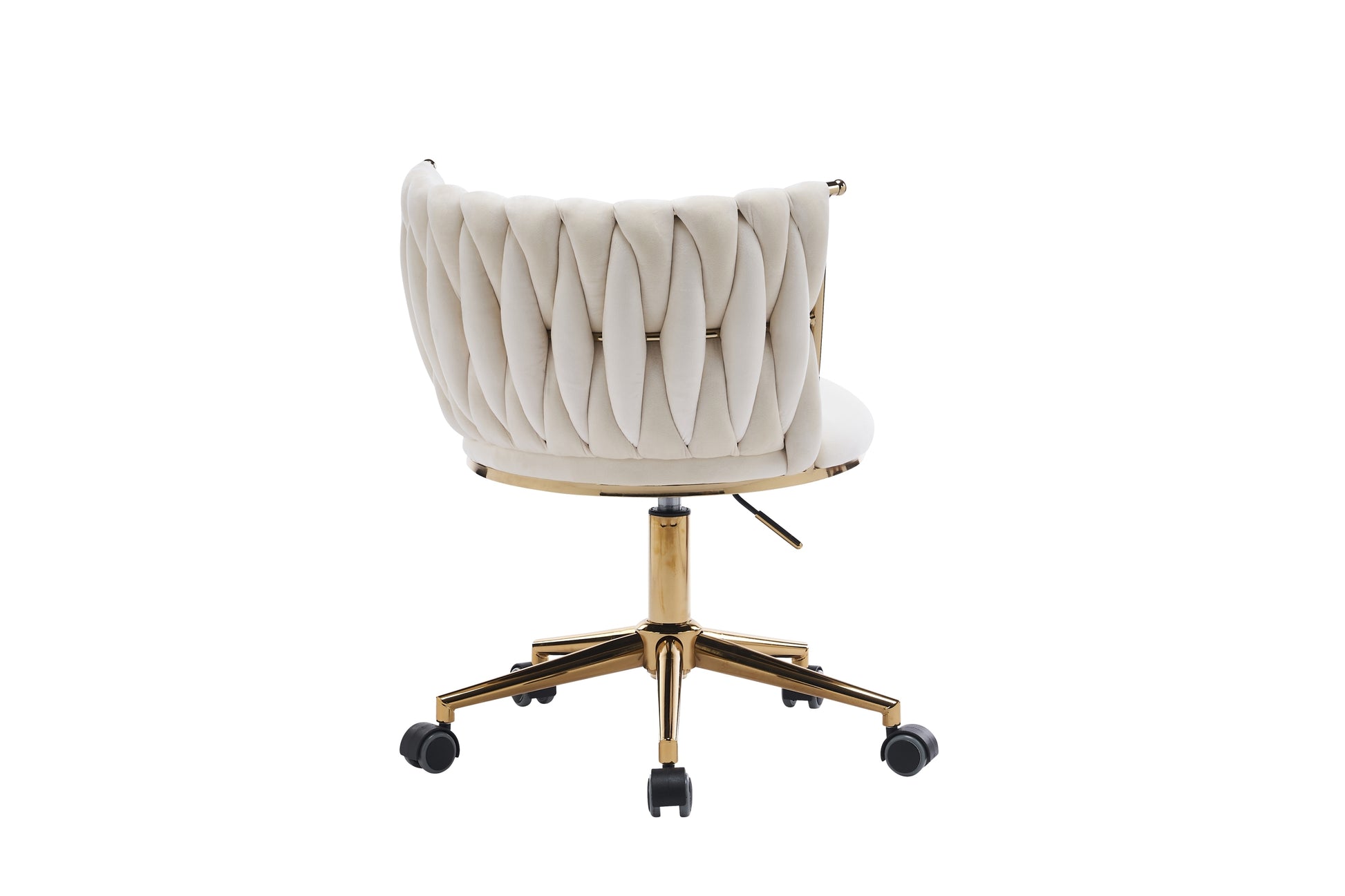 Emme Gold Framed Velvet Office Chair with Gold Base - Beige