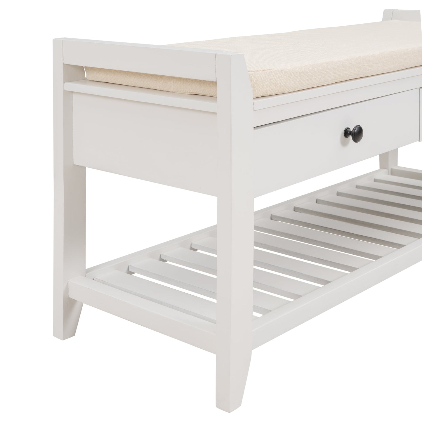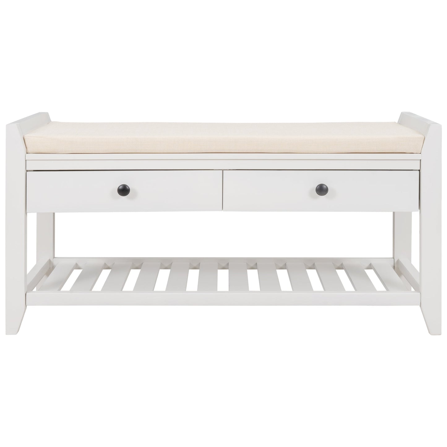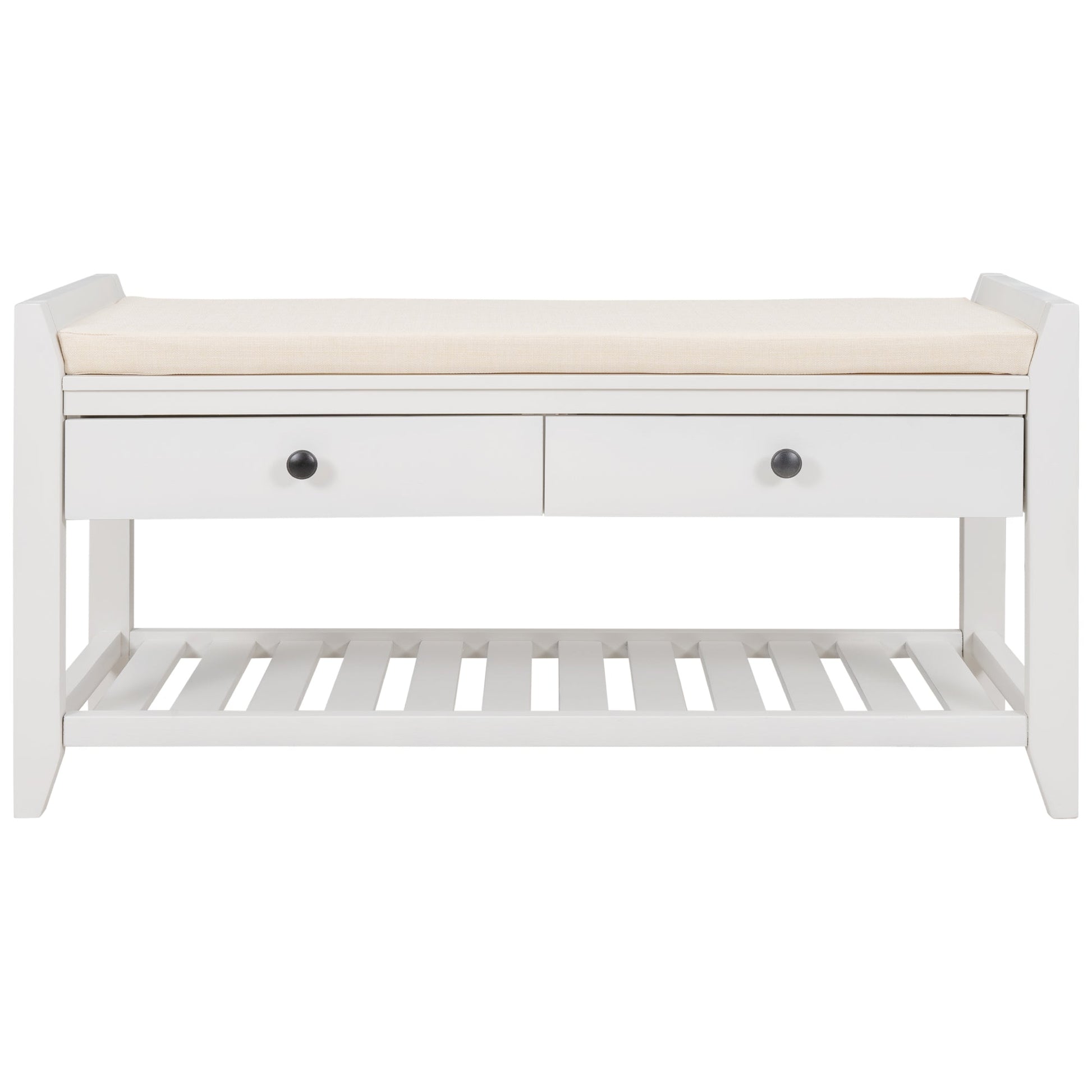 TREXM Entryway Storage Bench with Shoe Rack - White