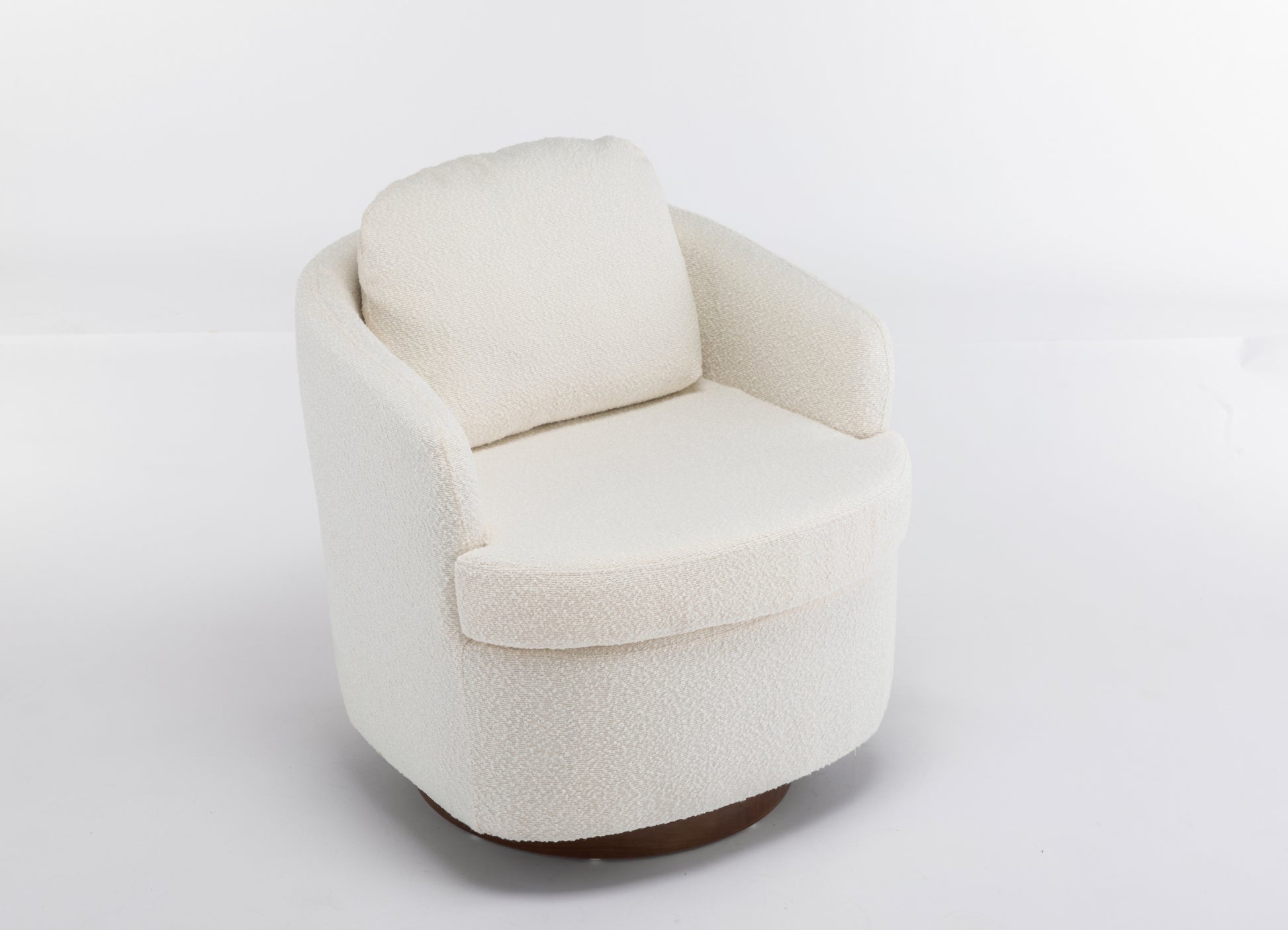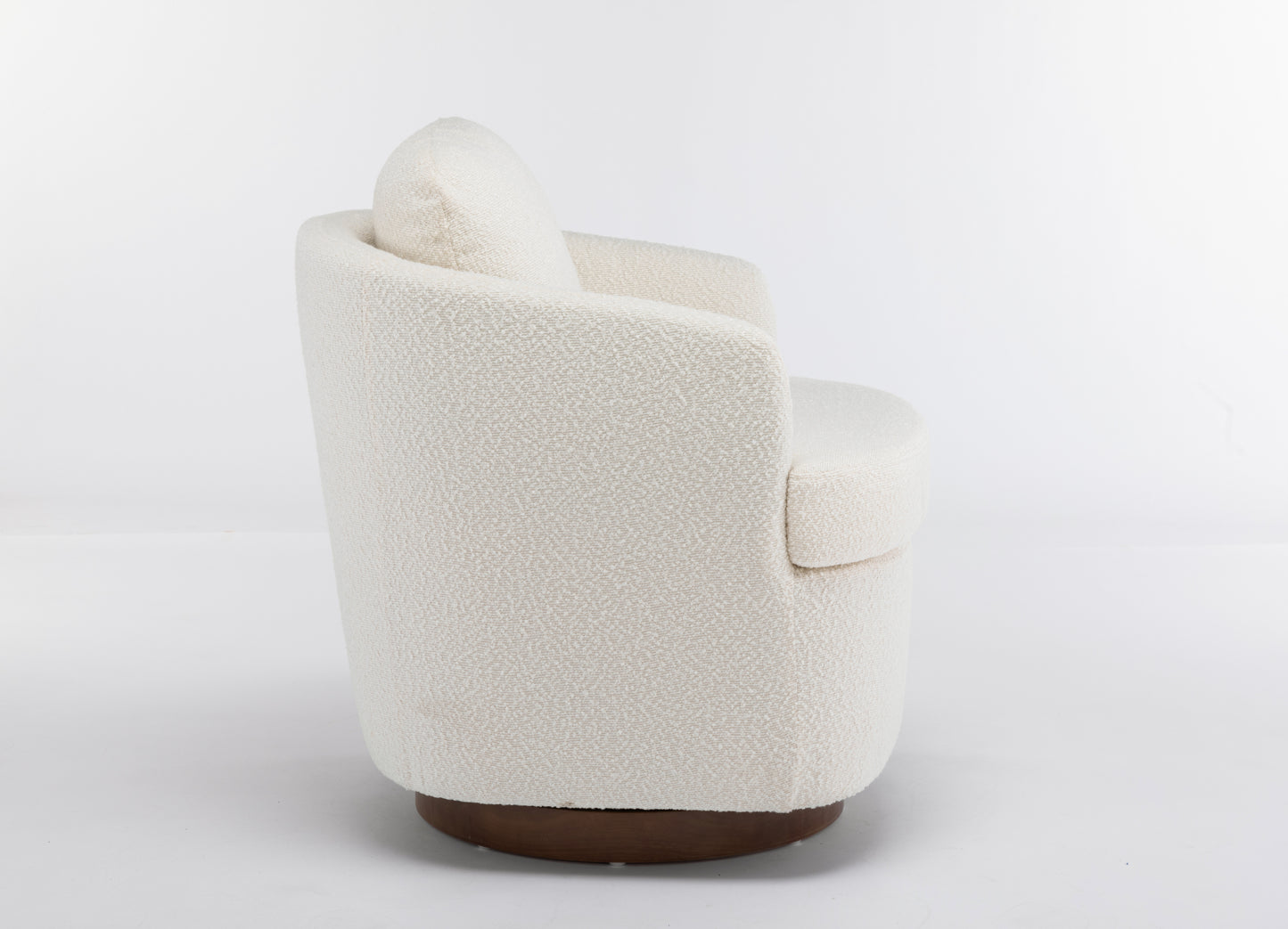 Barley Boucle Upholstered Swivel Accent Chair with Wooden Base - Off-White
