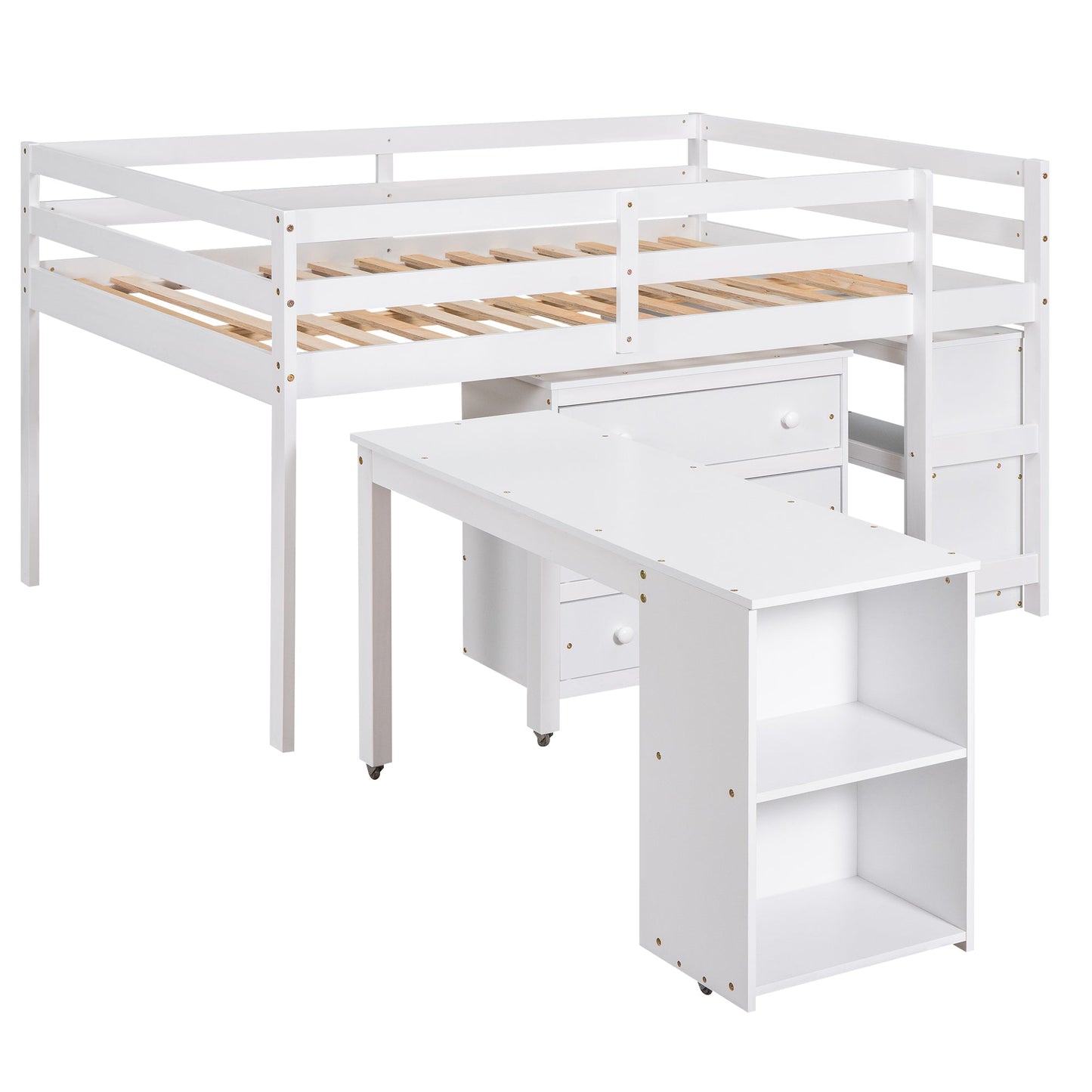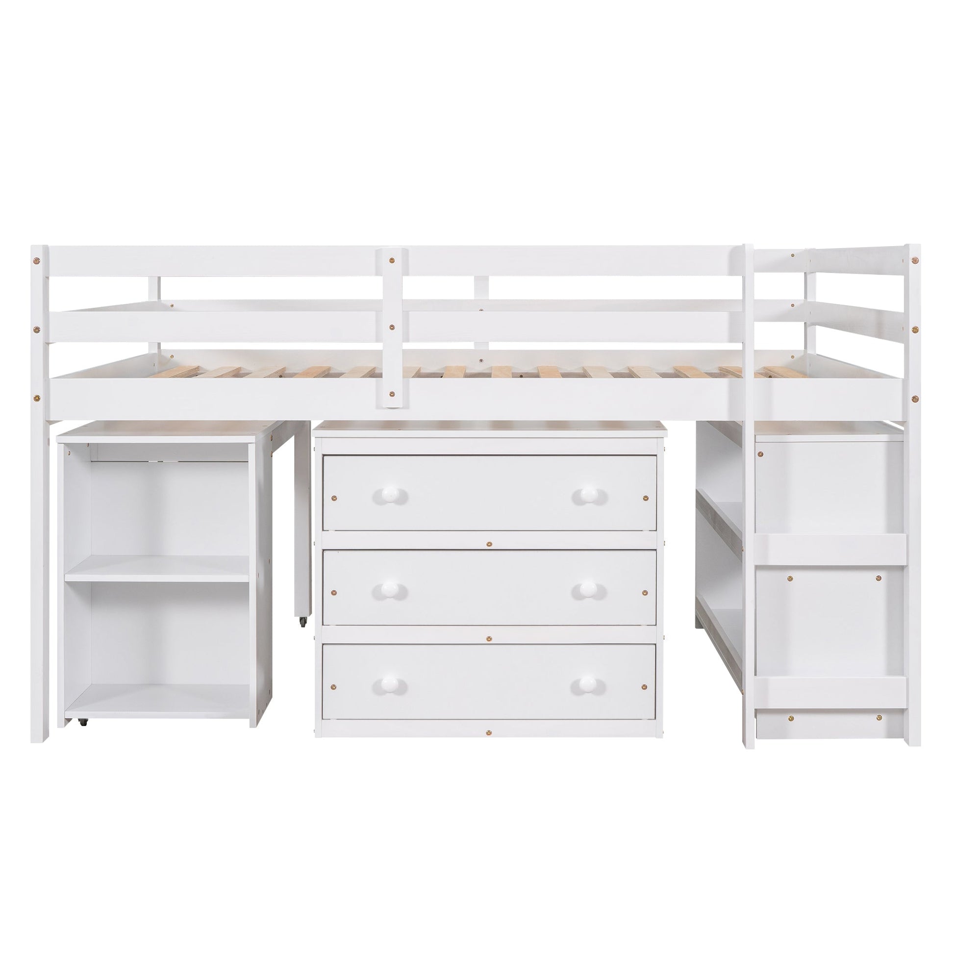 Homey Life Full Size Low Loft Bed with Cabinets & Desk - White