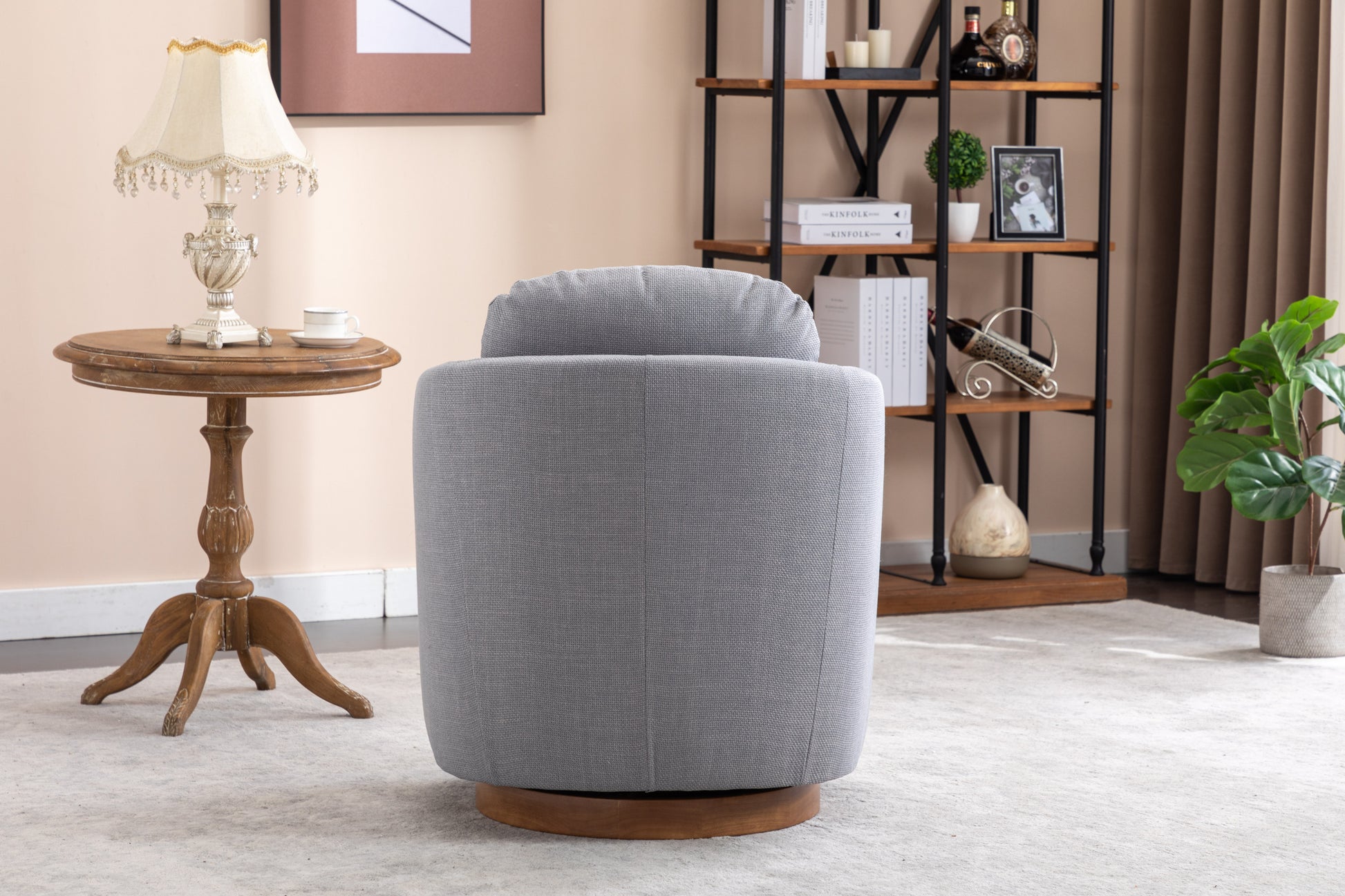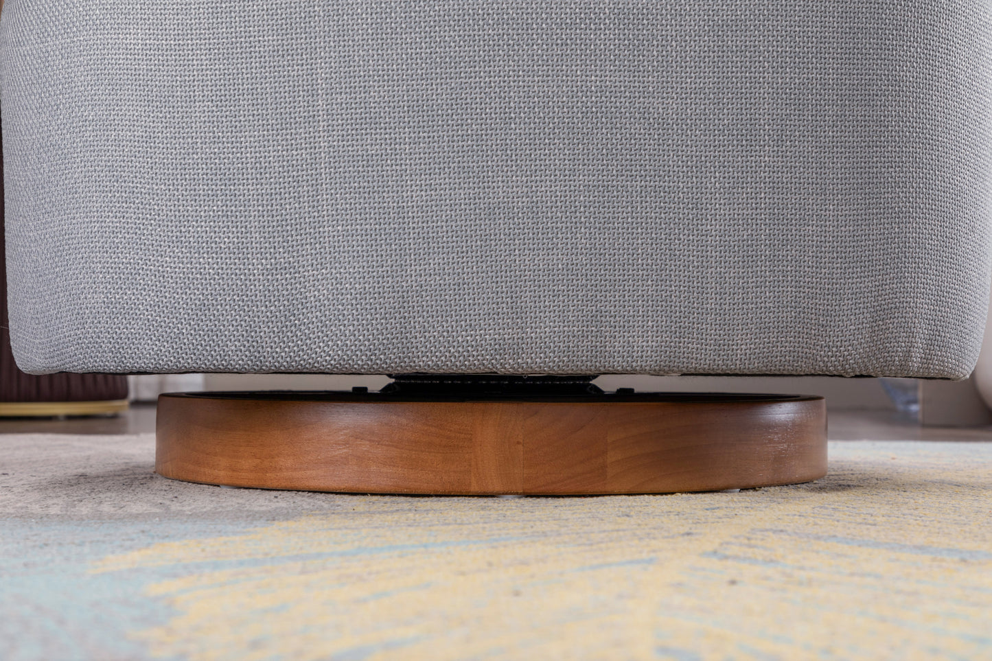 Barley Linen Swivel Accent Chair with Wooden Base - Gray