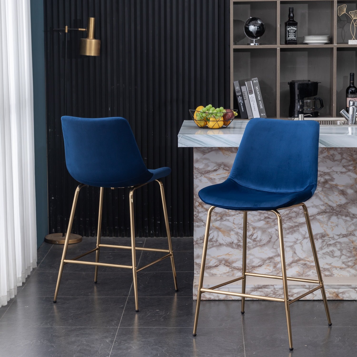 Aufurr Modern Velvet 26.50 Counter Height Stool, Set of 2, Blue