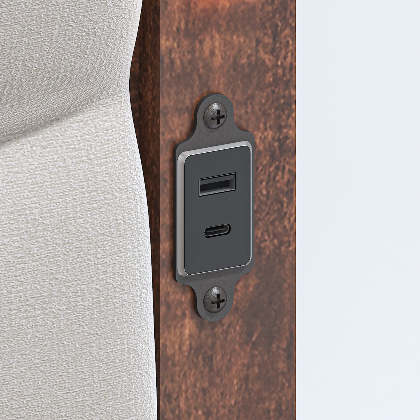 - The storage headboard of this bed features 1 USB ports & 1 Type C, Easily charge your devices, bed frame boasts an impressive Smart LED light bar headboard,Finger touch the light bar, the light bar full light, finger long press the light bar, the light bar brightness can be adjusted.