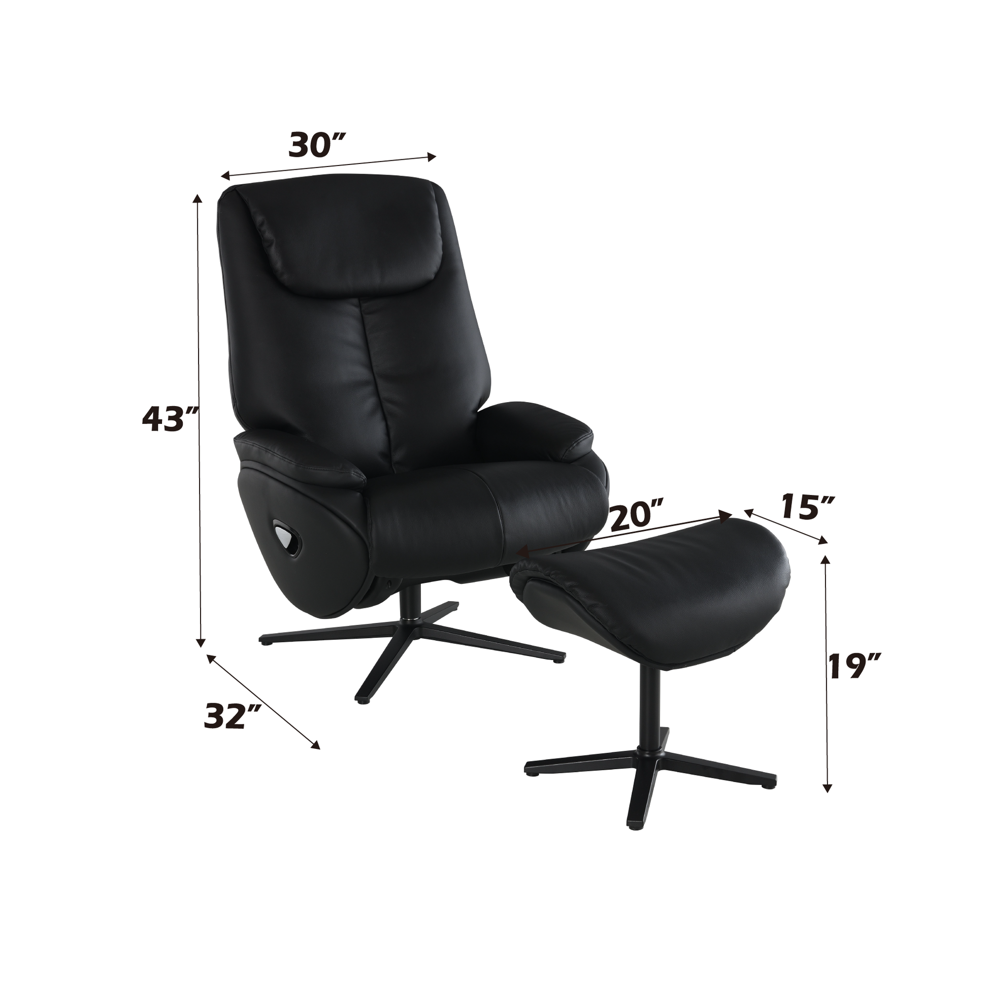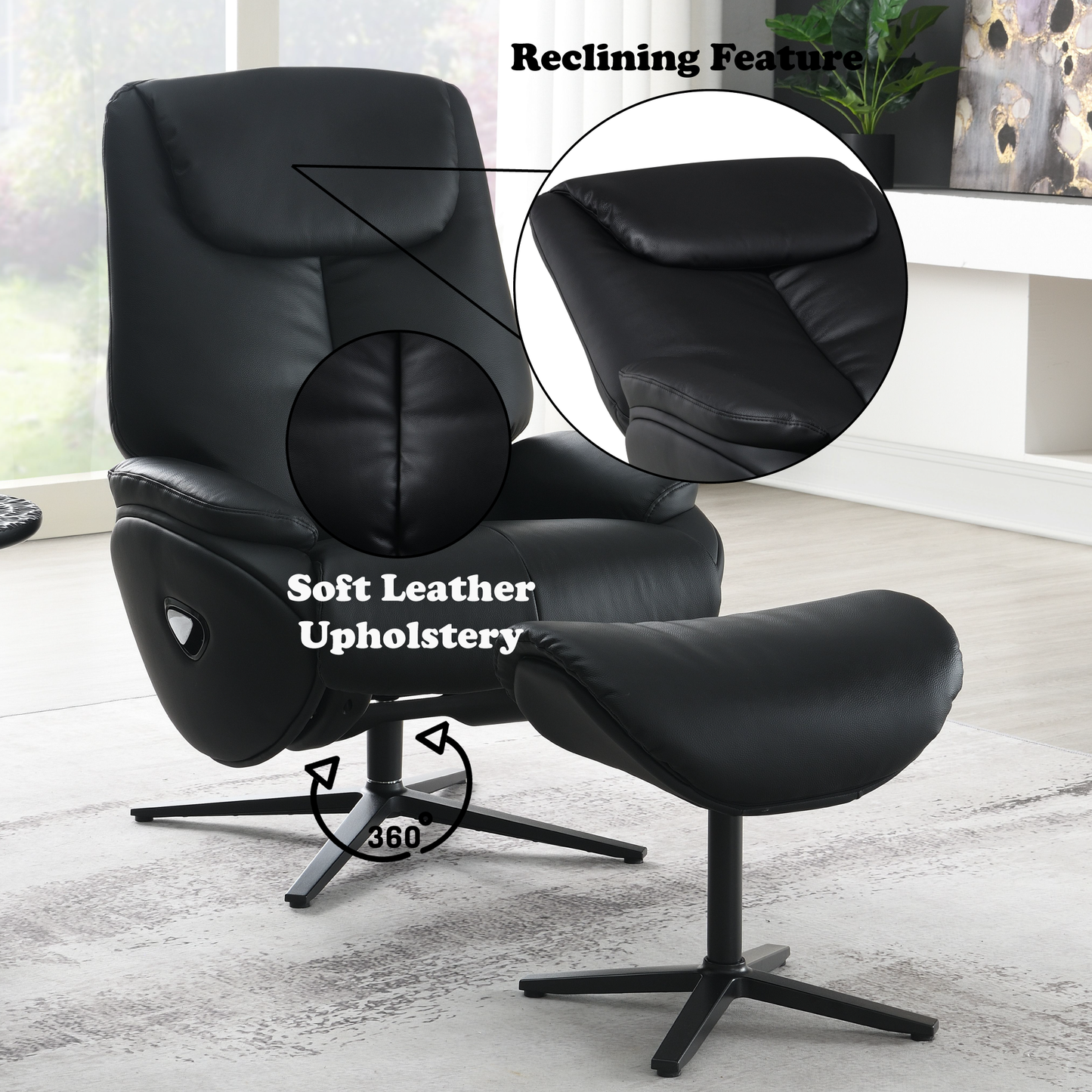 Labotina Black Top Grain Leather Accent Chair with Swivel & Ottoman