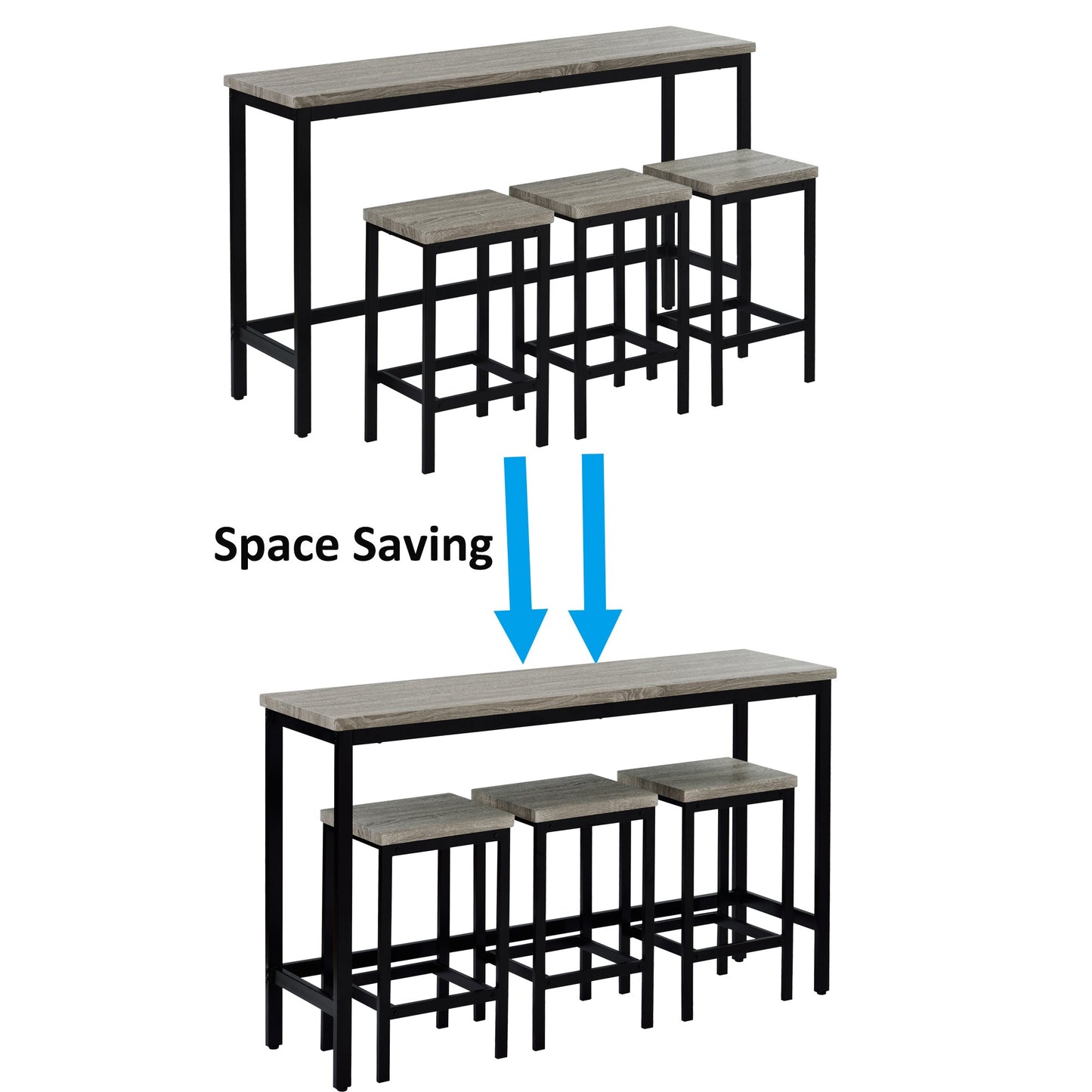 TOPMAX Counter Height Extra Long Dining Table Set with 3 Stools Pub Kitchen Set Side Table with Footrest, Gray