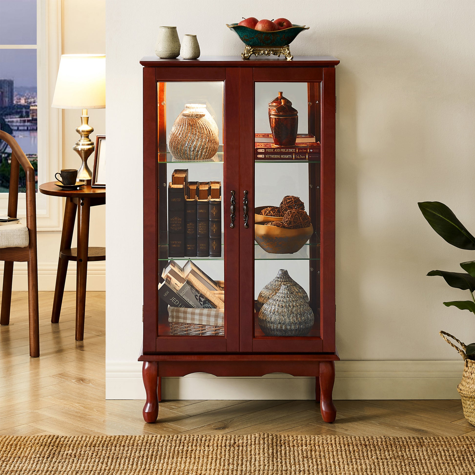 Florence Traditional Curio Cabinet with Cabriole Legs, Cherry