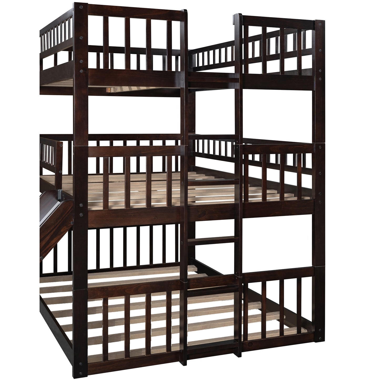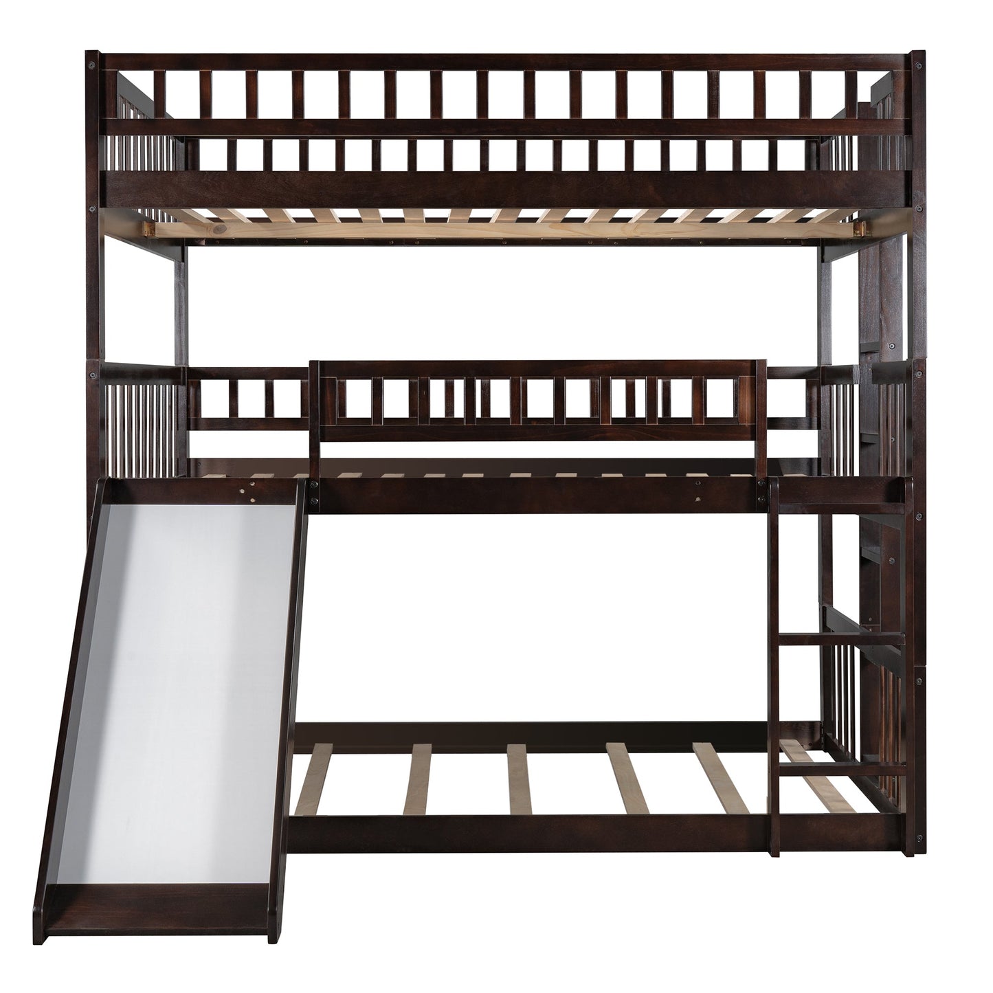 Homey Life Full-Over-Full-Over-Full Triple Bunk Bed with Built-in Ladder and Slide