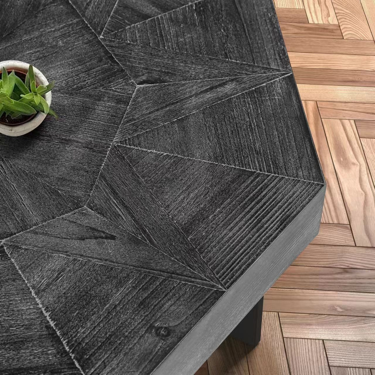Eulalia Vintage Octagonal Shape Patchwork Craft Wooden Coffee Table, Antique Black