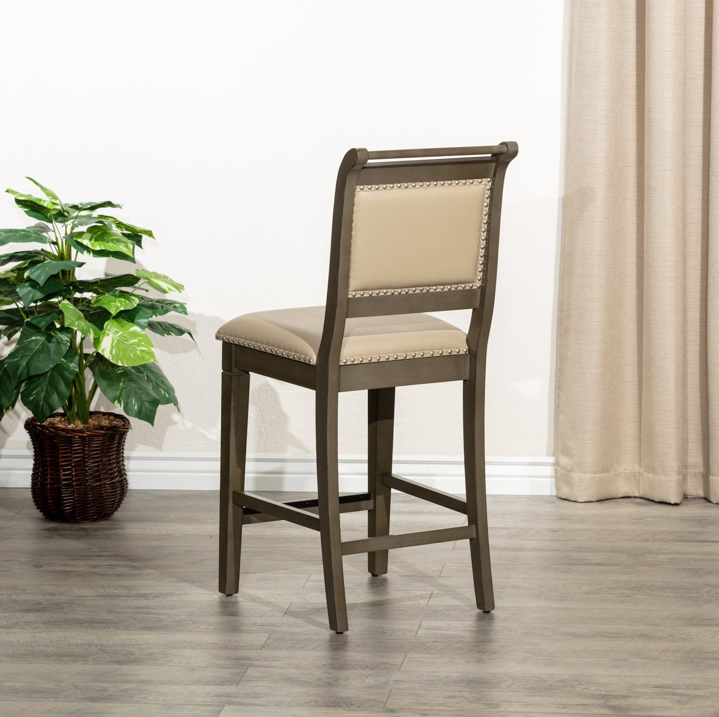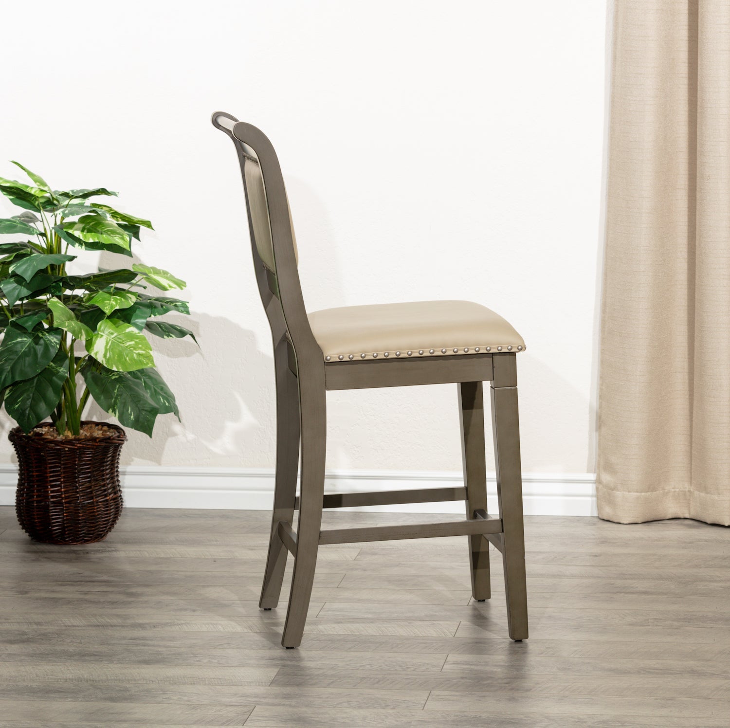 DTY Home 24" Counter Height Stool In Weathered Gray with Gray Leather Seat