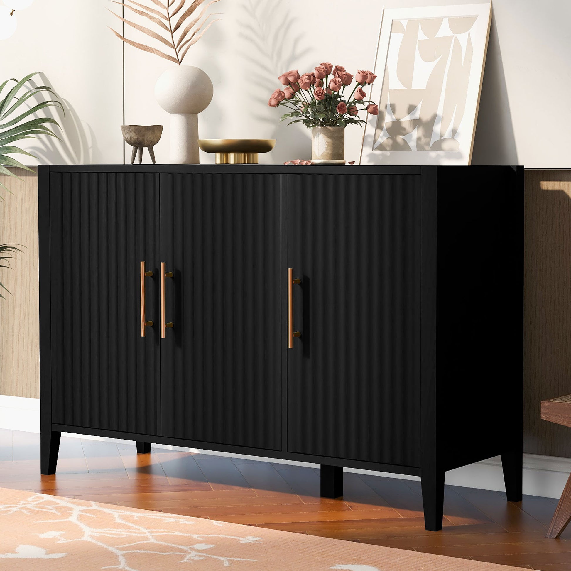 Ulric Modern 3-Door Accent Cabinet with Gold Handle, Black