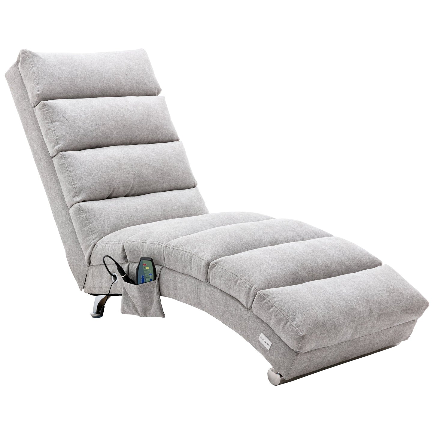 Coolmore Modern Linen Chaise Lounge with Massage Function & Remote in Light Gray