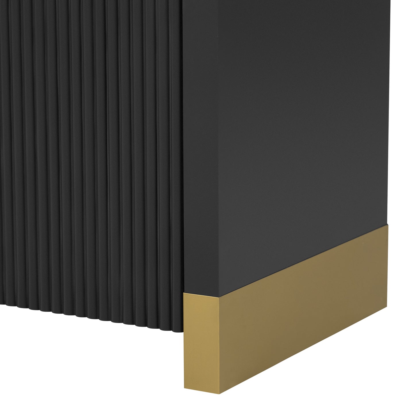 Atticus Modern 4-Door Wave Design Cabinet - Black & Natural