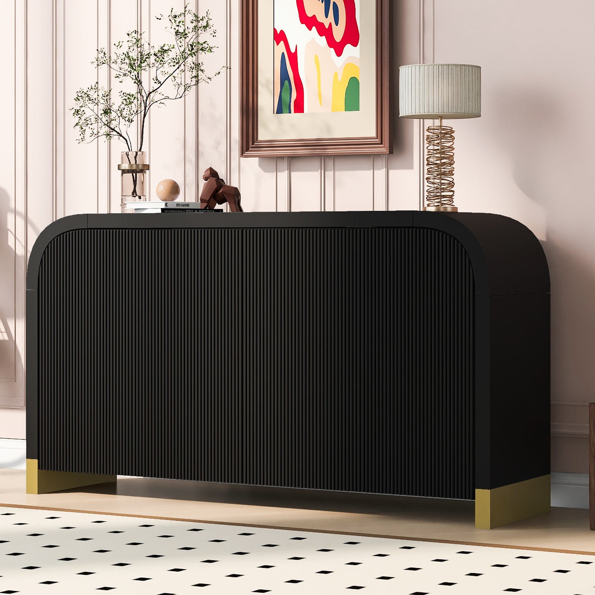 - [High Safety Performance]:The curved corners of the cabinet provide a sleek and modern aesthetic, enhancing the overall elegance of the piece. This design element not only adds a touch of sophistication but also ensures safety by eliminating sharp edges, making it a perfect addition to homes with children.