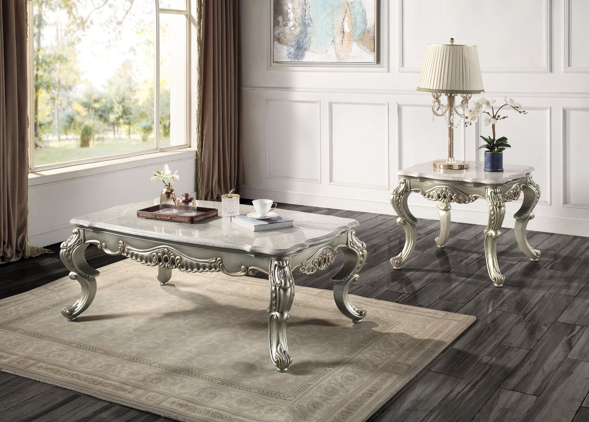 ACME Miliani End Table, Natural Marble & Antique Bronze Finish LV01784