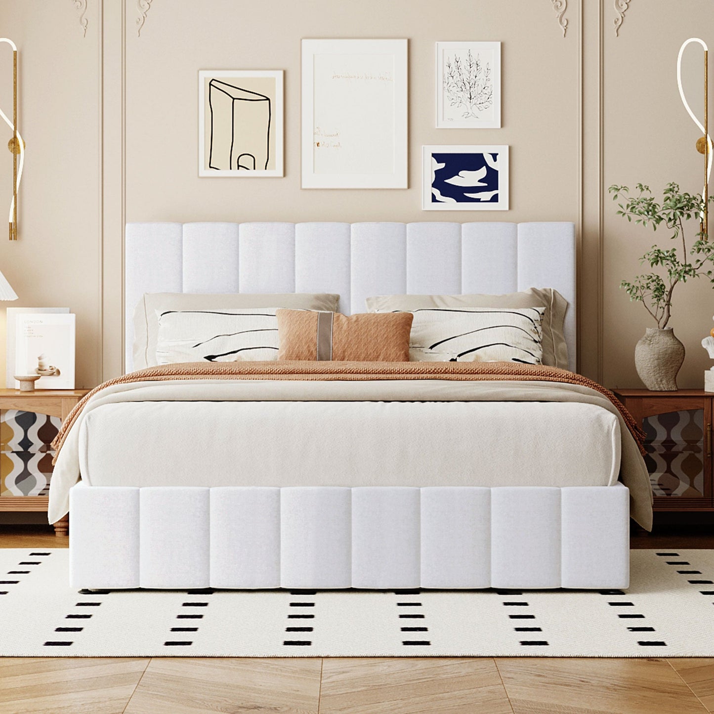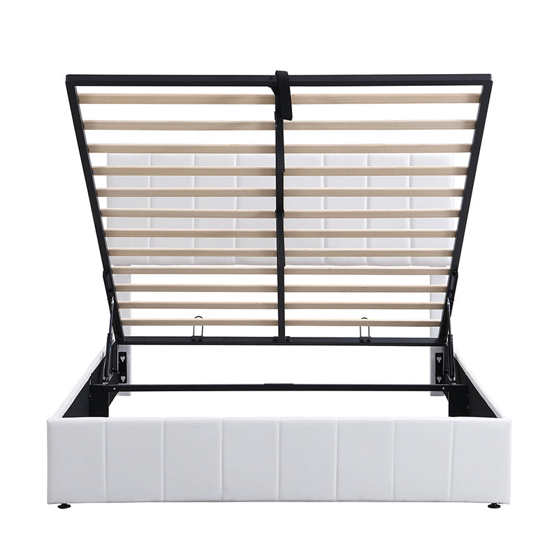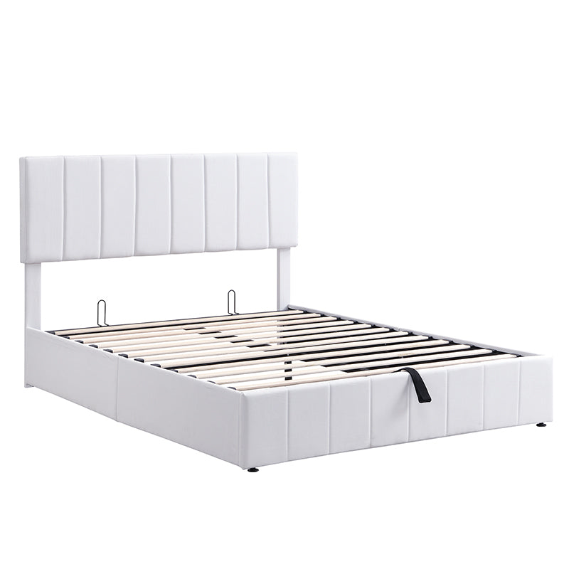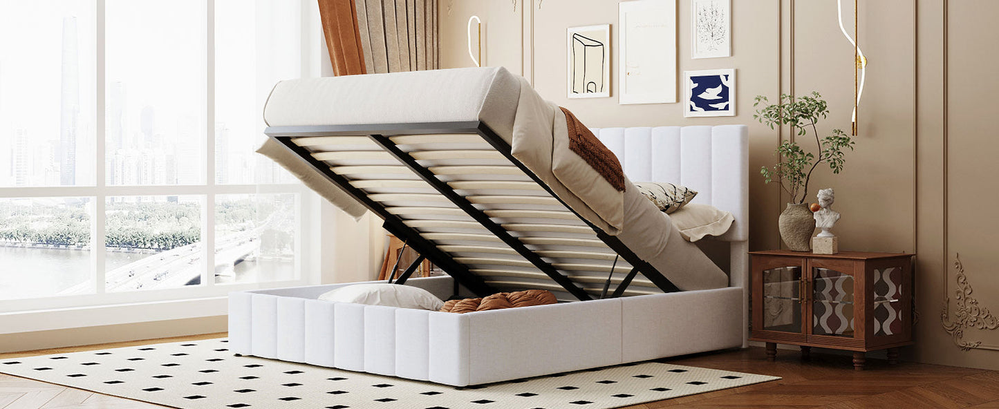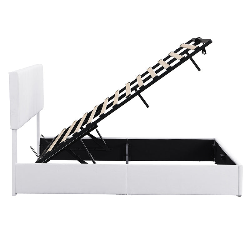 Destiny Queen size Upholstered Platform bed with a Hydraulic Storage System - White
