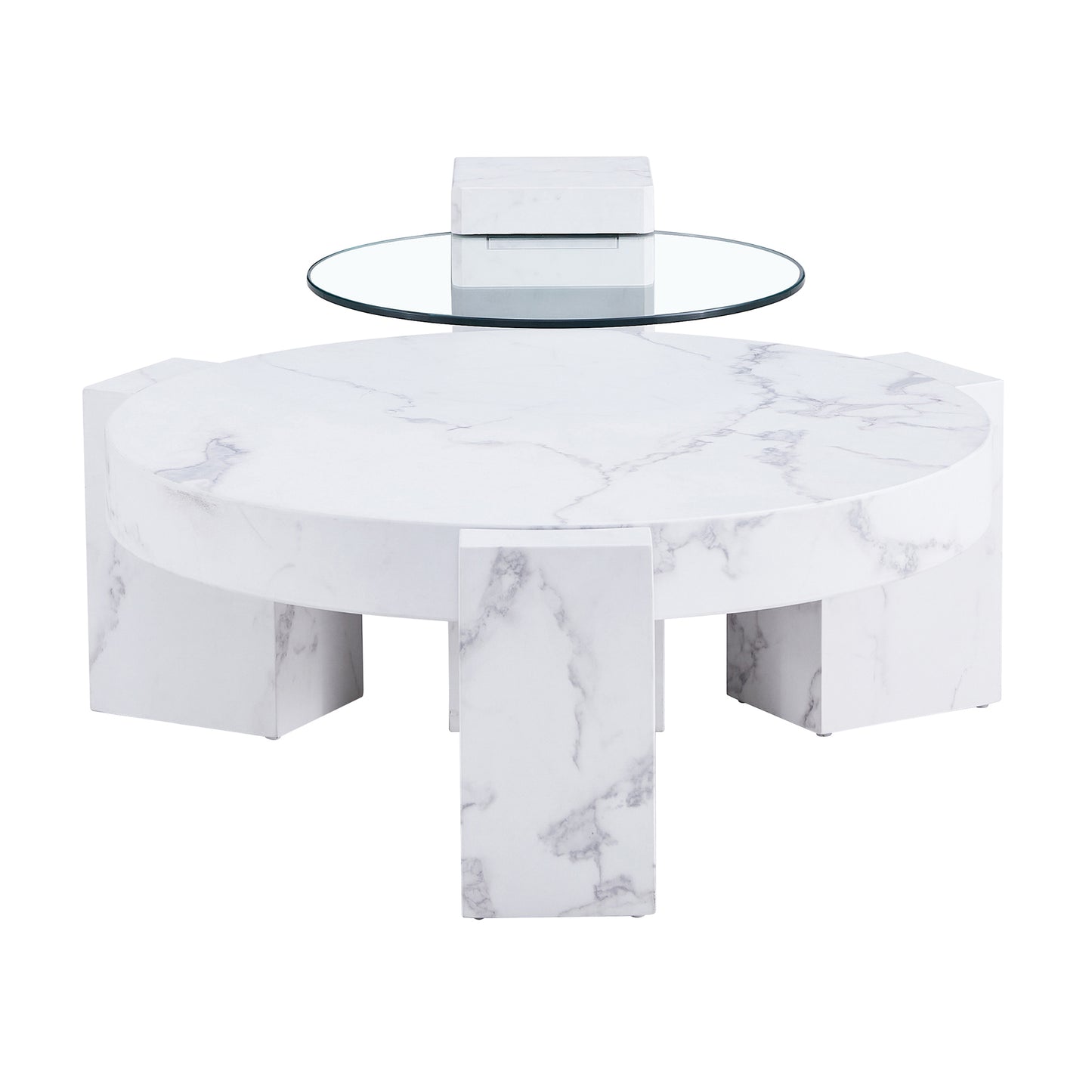 Meeker Modern 2PC Faux Marble Coffee & Side Table Set in White