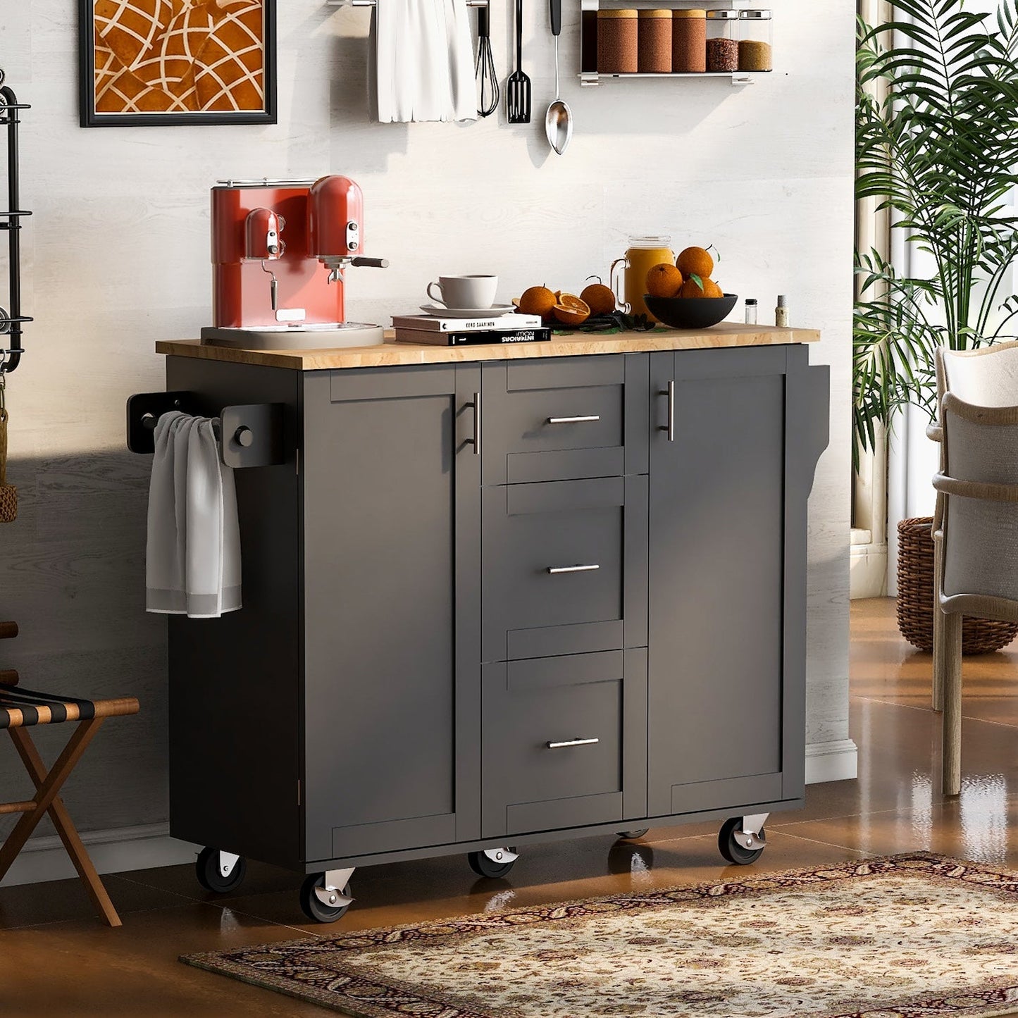 - [Large Storage Space] This 43”D kitchen island is meticulously designed to optimize functionality and organization in your culinary space. Boasting three drawers and two slide-out shelves, it offers abundant storage capacity for all your essential items. Bid farewell to a cluttered countertop as this cart ensures meticulous placement of everything, while also providing additional room for pots, pans, utensils, small appliances, and pantry necessities.