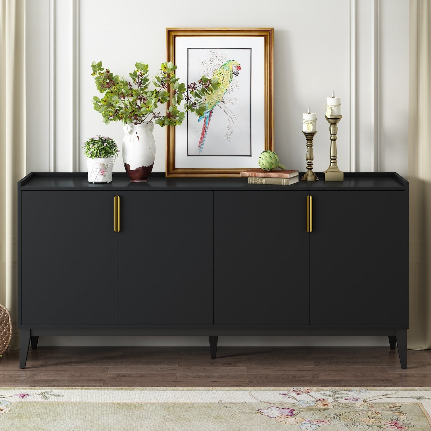 Luna Modern 4-Door Cabinet with Gold Handles - Black
