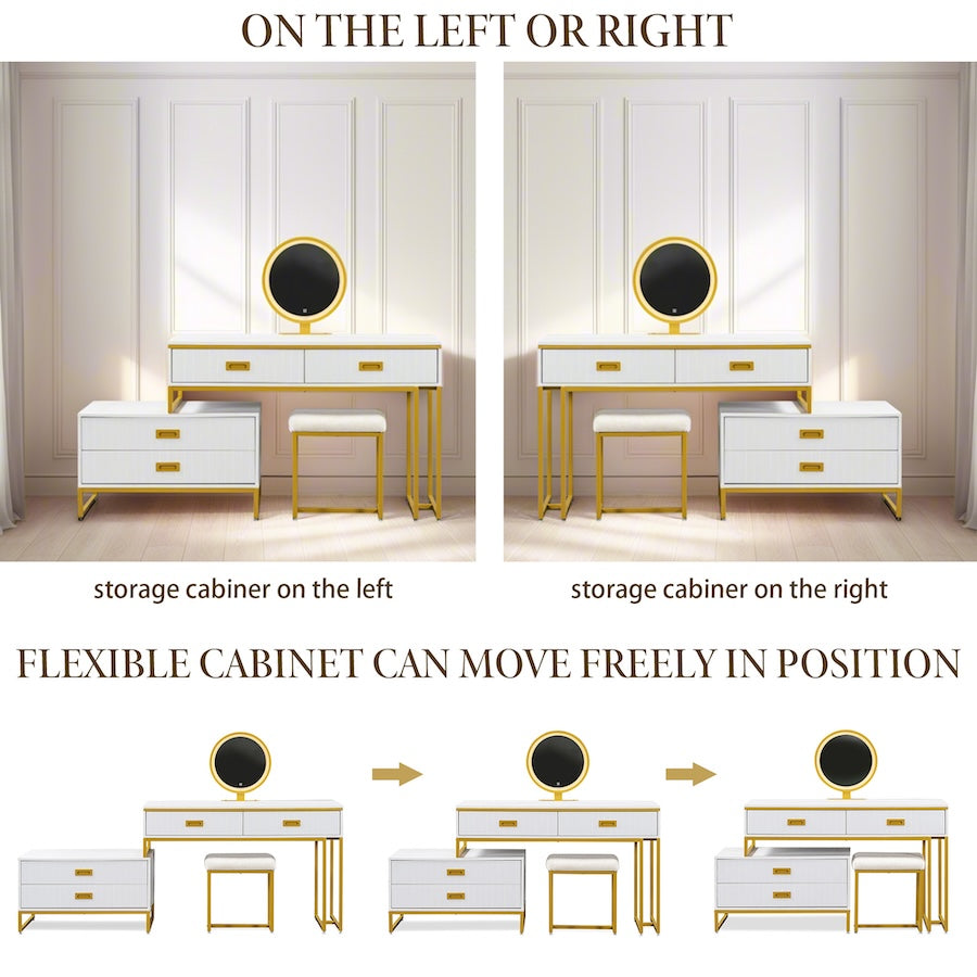 - Ample storage: Ample capacity and zoned storage are provided. In addition to the two drawers of the main desk, the side cabinet also contains two drawers for storing your cosmetics and sundries.