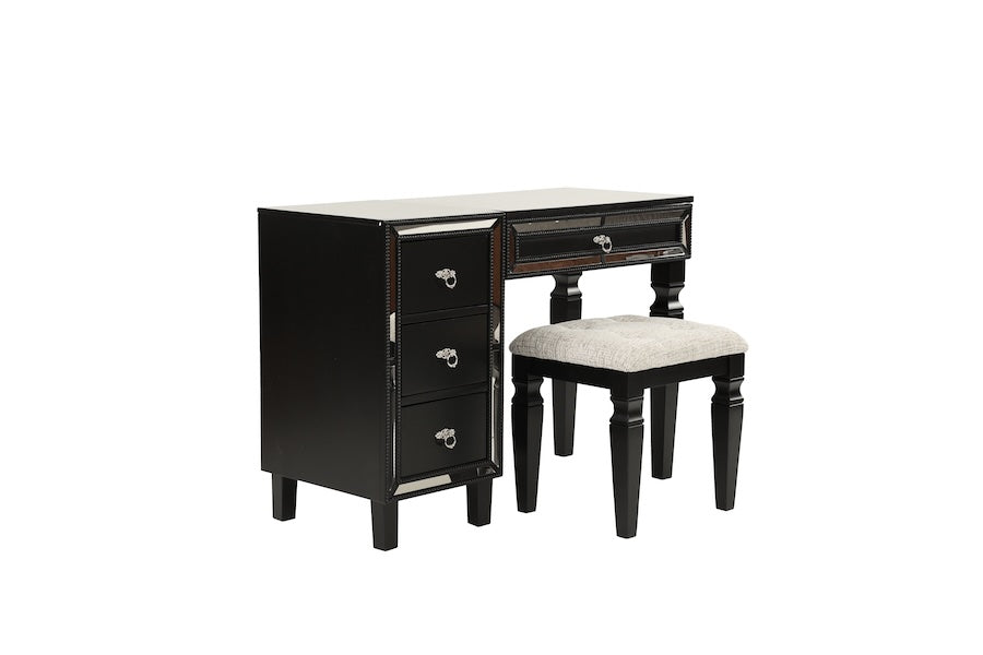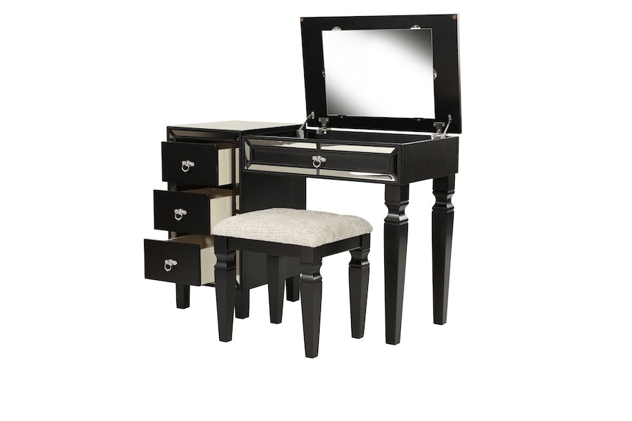Randa Contemporary Vanity Set with Stool - Black & Mirror