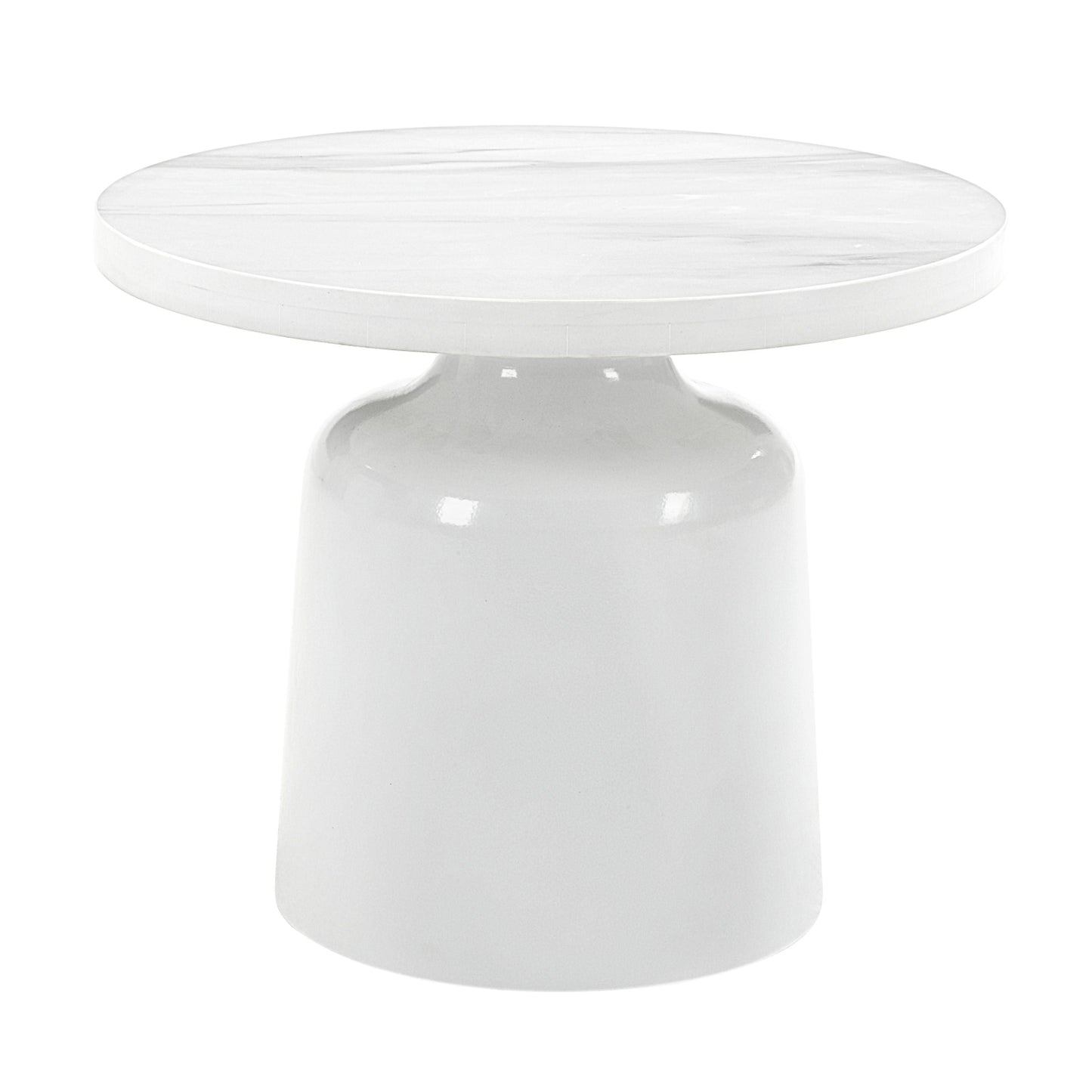22" Round White Faux Marble End Table – Pedestal Base with High-Gloss Finish